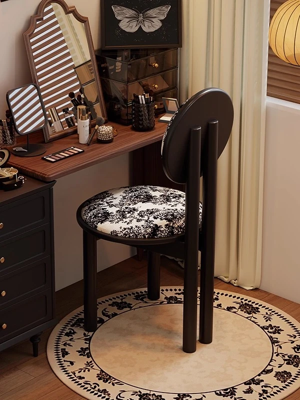 アンティーク調メイクアップチェア|和の美しさを感じる実木製|侘寂風デザイン|女性の寝室にぴったり|背もたれ付きで快適|軽やかで贅沢な雰囲気のヴィンテージ風椅子