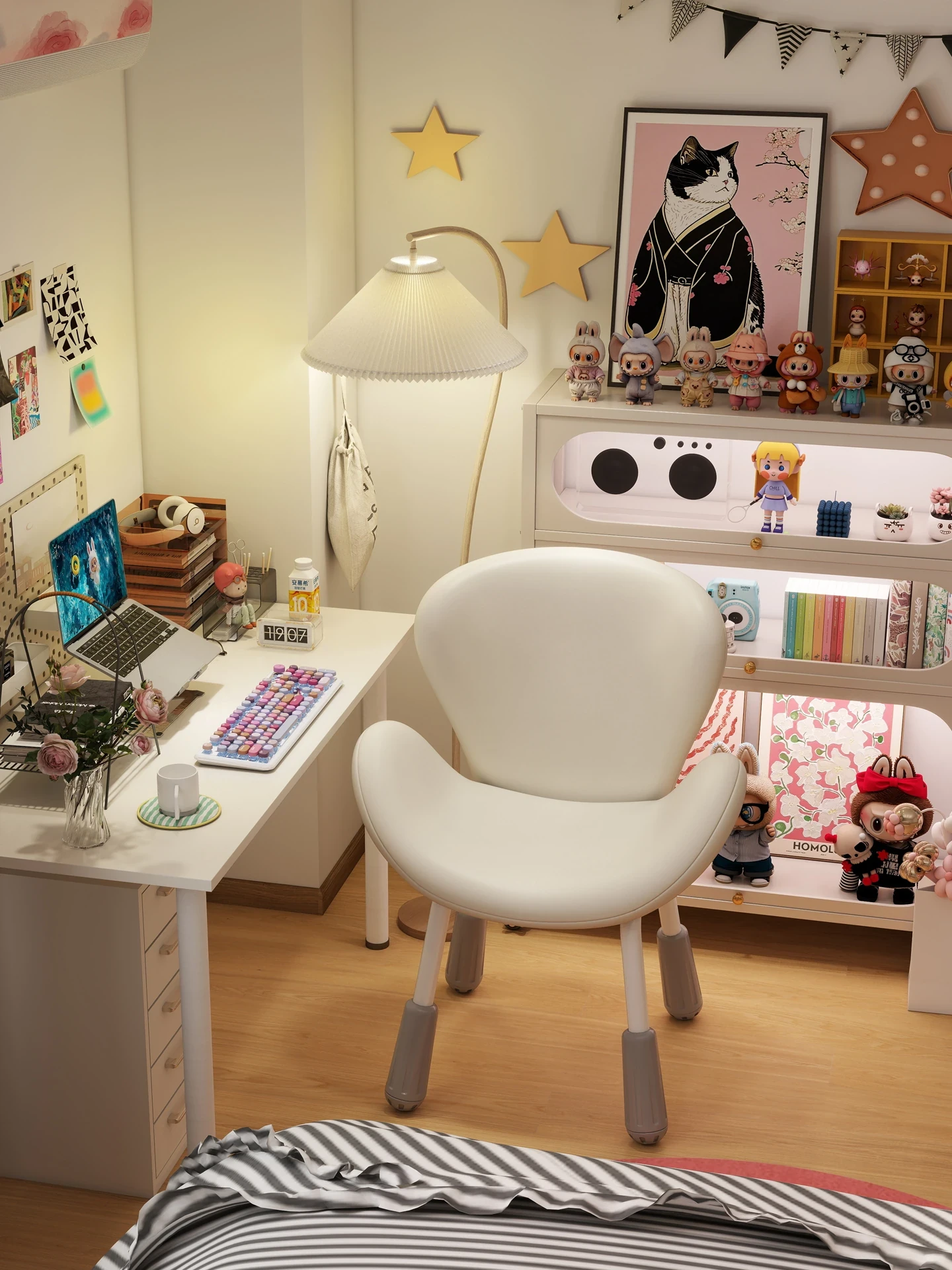 クリーム風のおしゃれな回転式化粧椅子 - 猫の爪デザイン!小型スペースにぴったりな女の子向けインテリア。ネット人気のデスクチェアとして、快適な座り心地でおしゃれなメイクタイムを演出します。