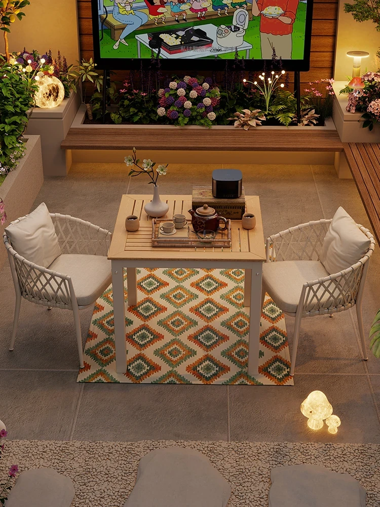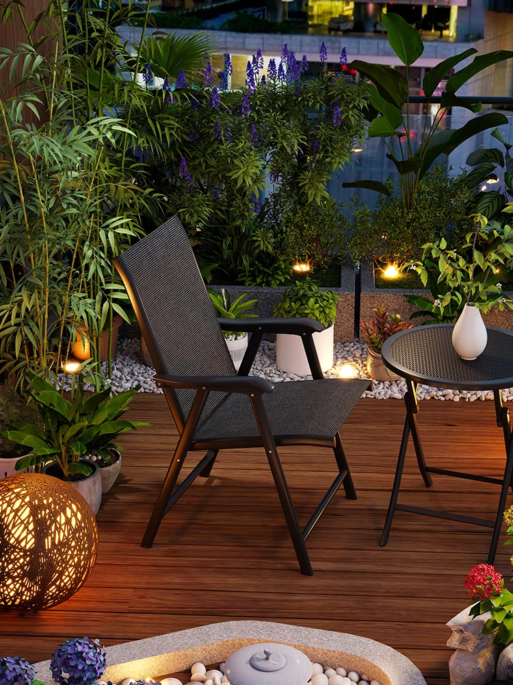 アウトドア用折りたたみテーブル&チェアセット - ヴィラや庭にぴったりのリラックスチェア、耐水性でお手入れ簡単!バルコニーやパティオでの談笑や食事に最適なアイテムです。