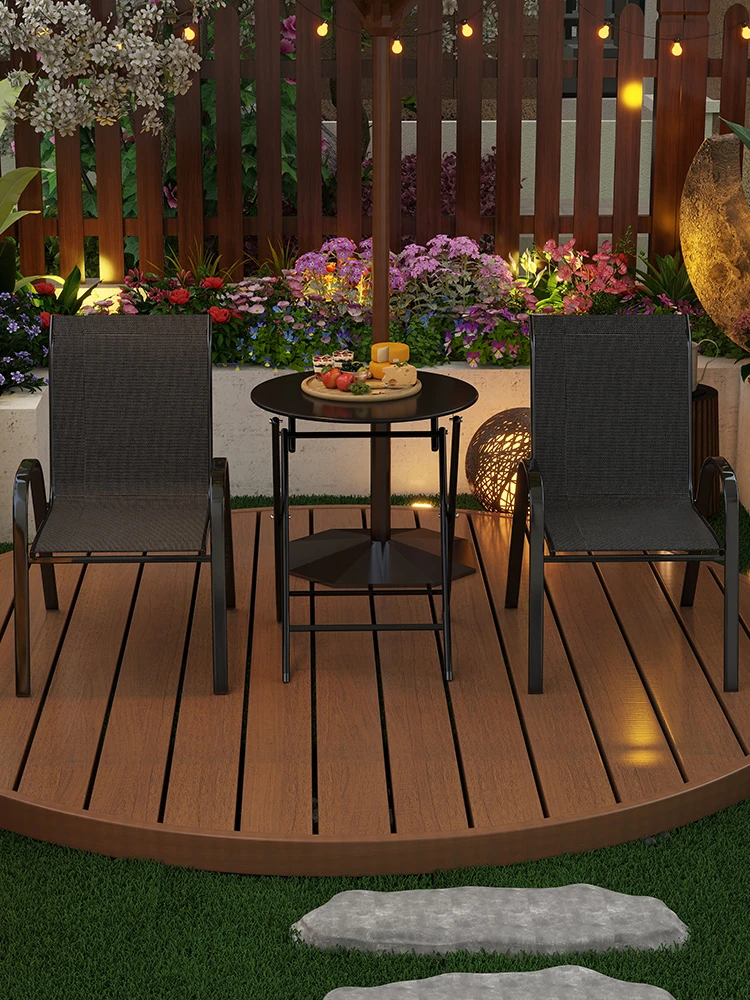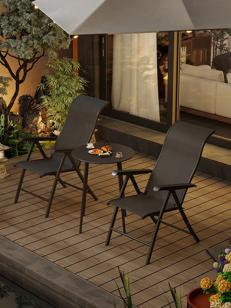 バルコニー用レジャーテーブルセット - 鉄製テスリン布折りたたみ椅子&小さなコーヒーテーブル、アフタヌーンティーにぴったりな3点セット!快適なひとときをお楽しみください。