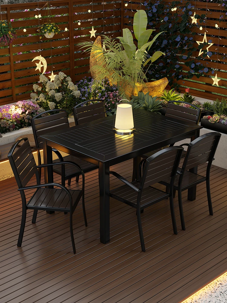 アウトドアテーブルセット|耐腐食性のプラスチックウッド製|庭やバルコニーに最適!リラックスできるカフェスタイルの屋外ダイニングテーブル&チェアのコンビネーション!