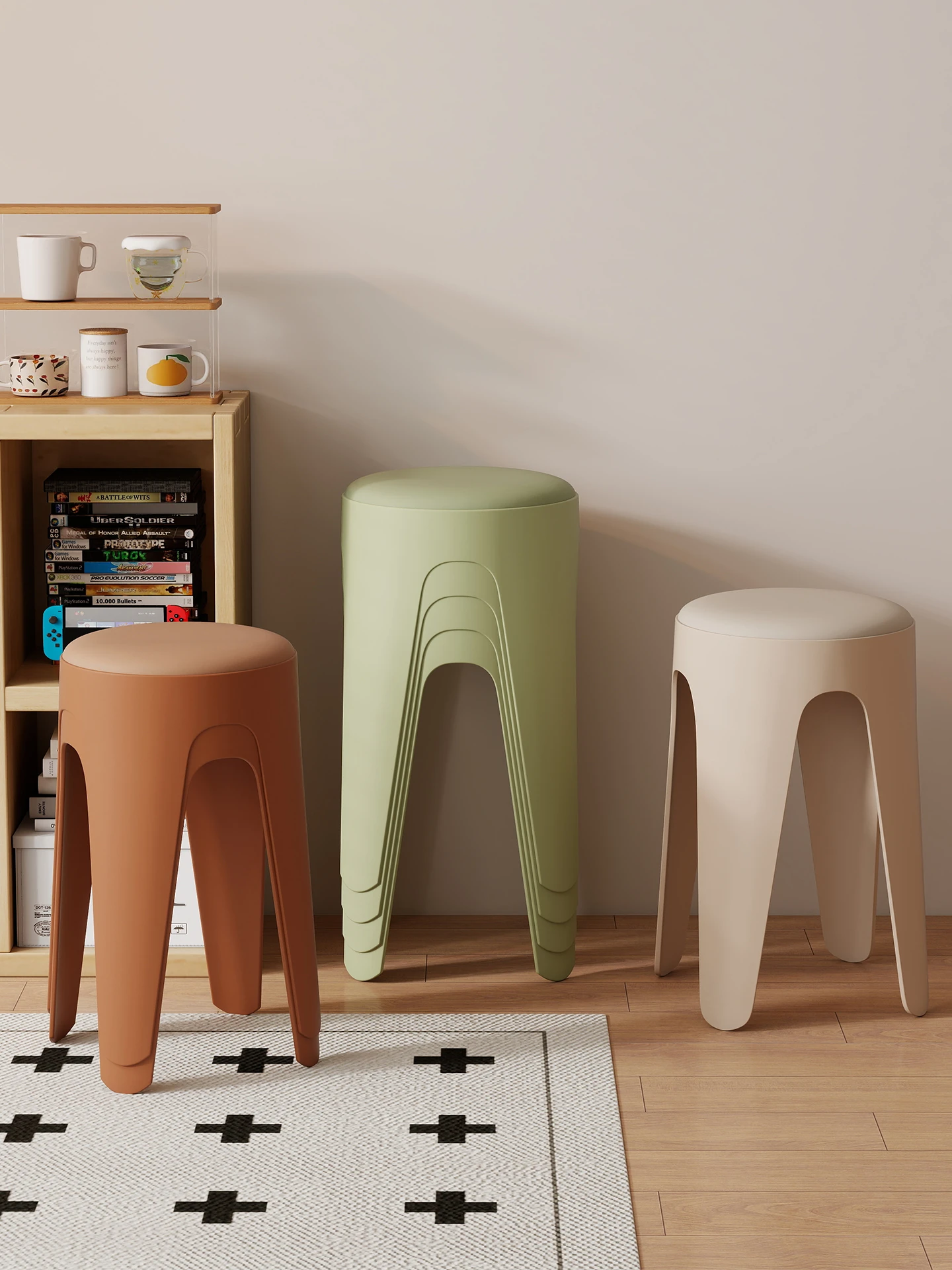 Thickened Plastic Stool - Modern Minimalist Design, Stackable, Durable, and Comfortable for Long Sitting - Ideal for Home Use as High Round and Bench Stool