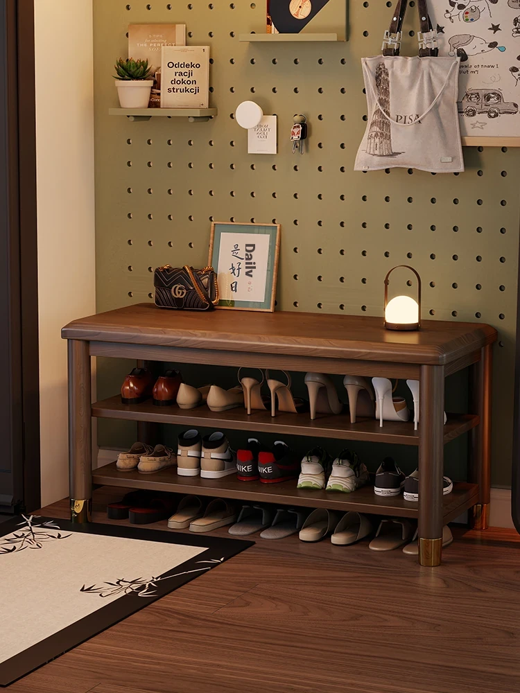 Elegant New Chinese Style Solid Wood Shoe Bench with Storage – Luxurious Entryway Shoe Rack and Seat, Perfect for Convenient Shoe Changing at Home