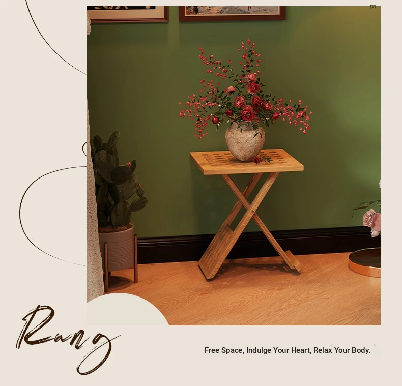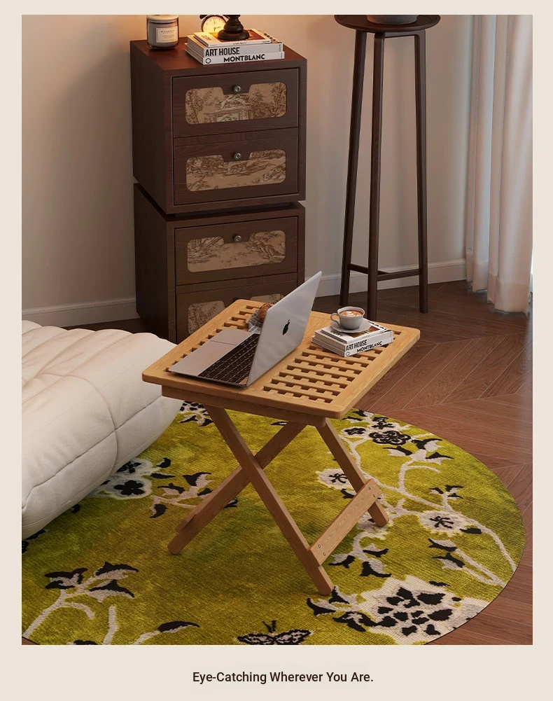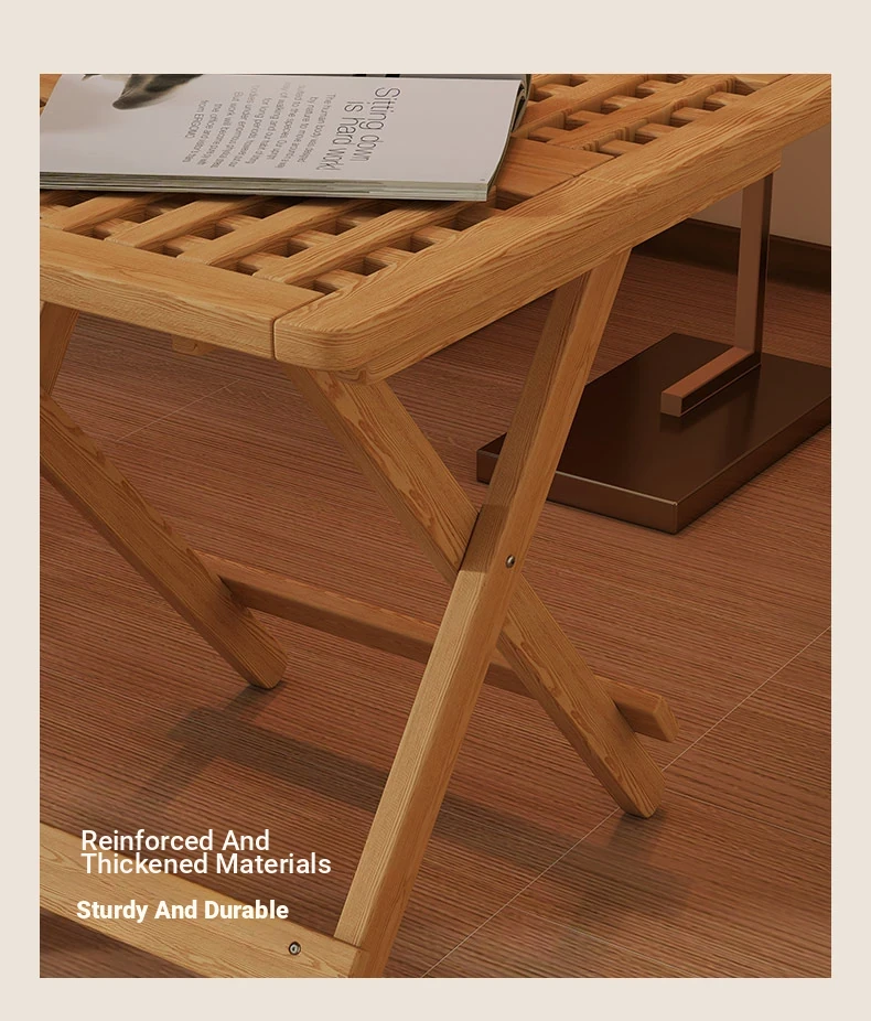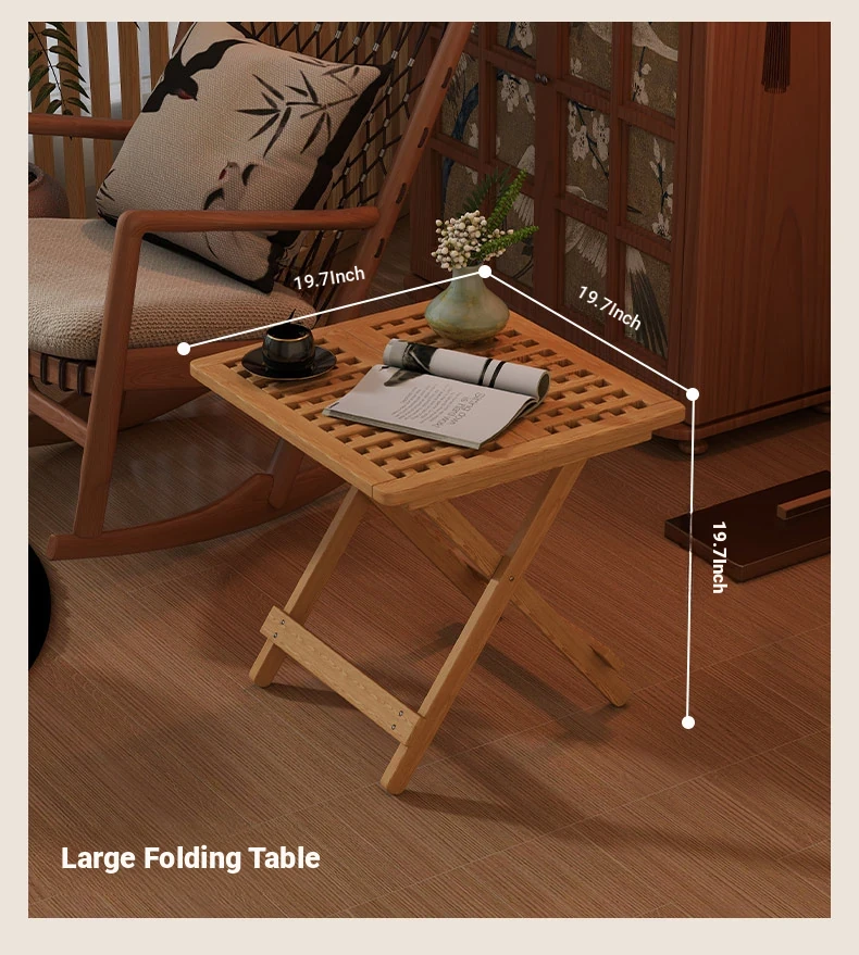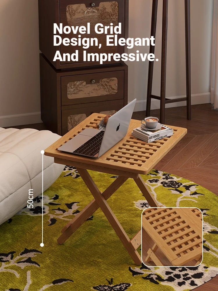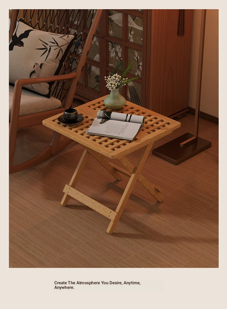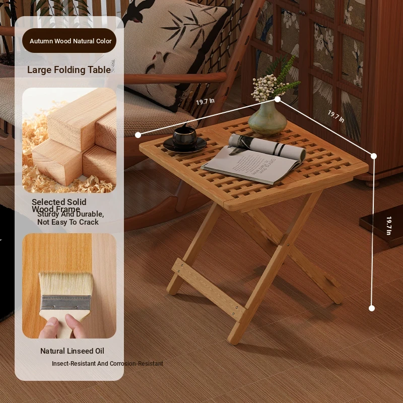 Rustic Solid Wood Folding Table - Portable Grid Tea Table for Bedroom, Simple Nightstand, and Balcony, Ideal Small Tea Desk for Cozy Spaces