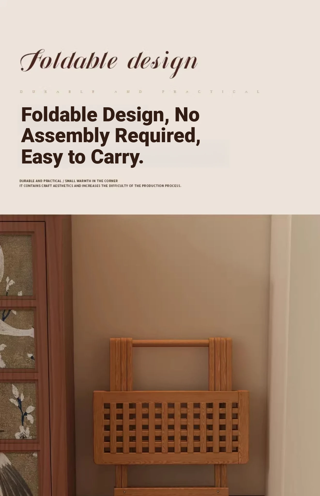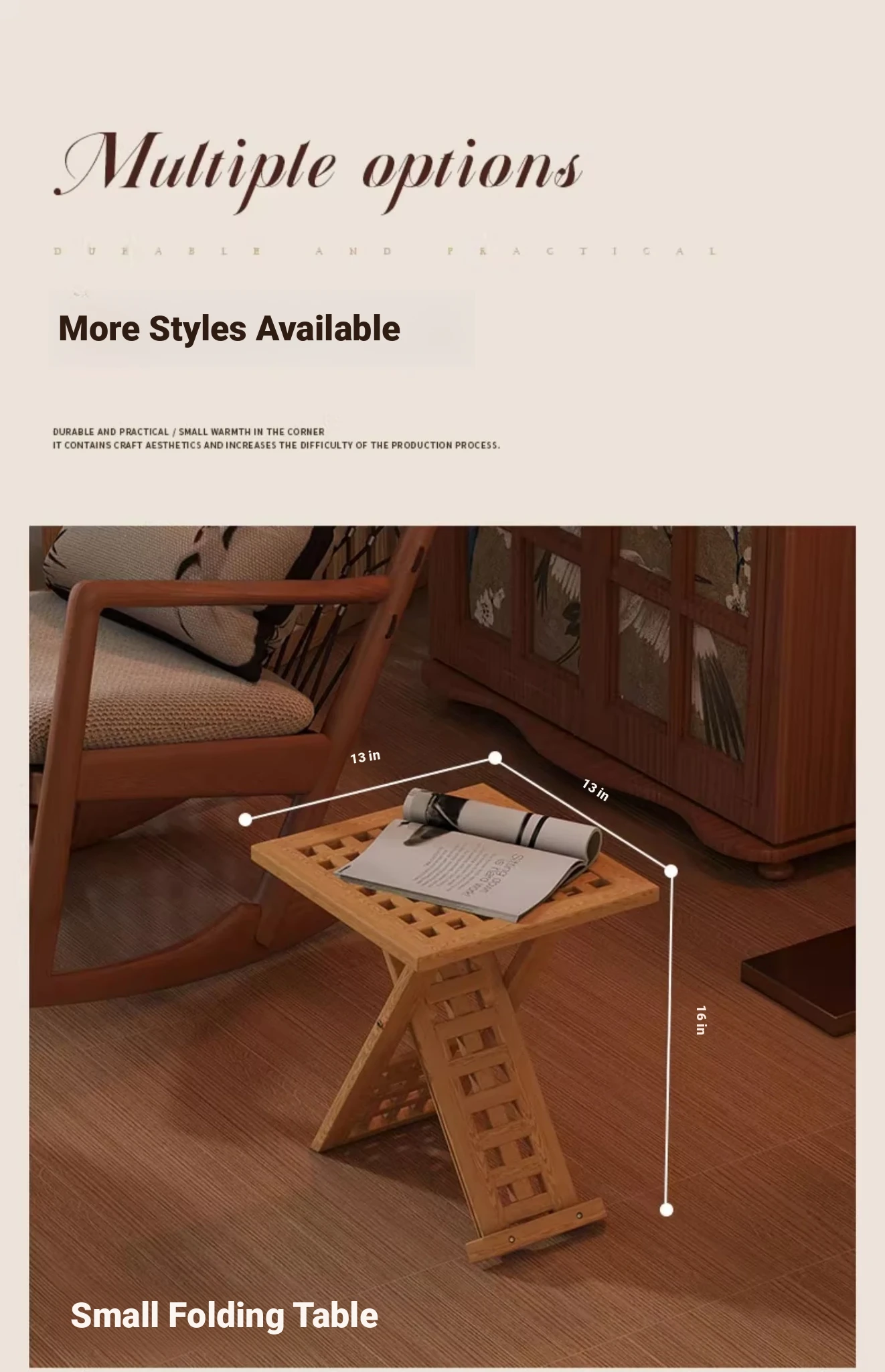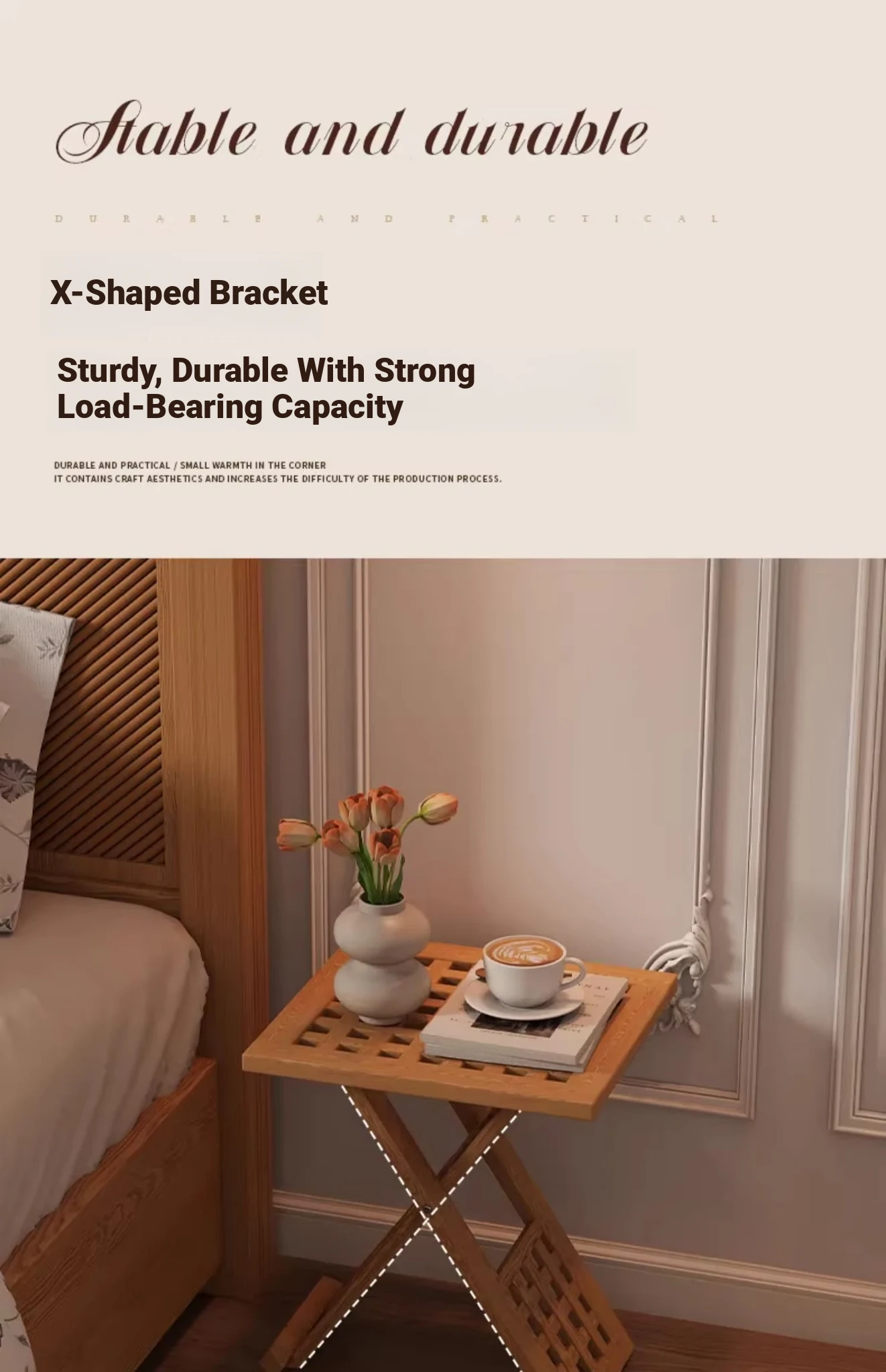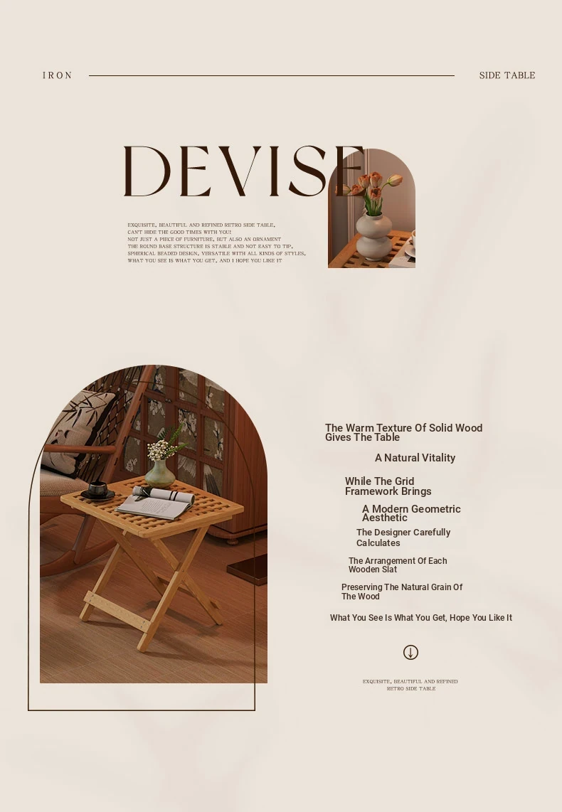 Rustic Solid Wood Folding Table - Portable Grid Tea Table for Bedroom, Simple Nightstand, and Balcony, Ideal Small Tea Desk for Cozy Spaces