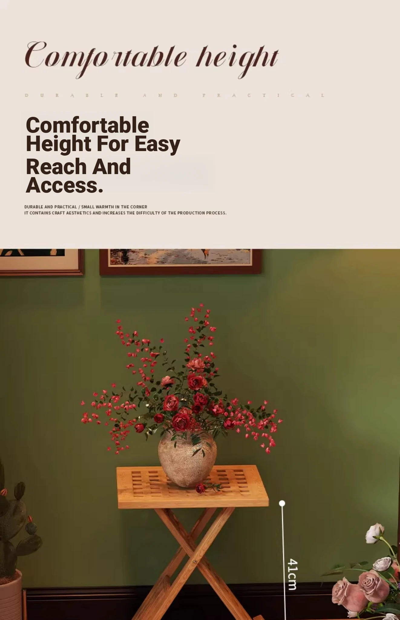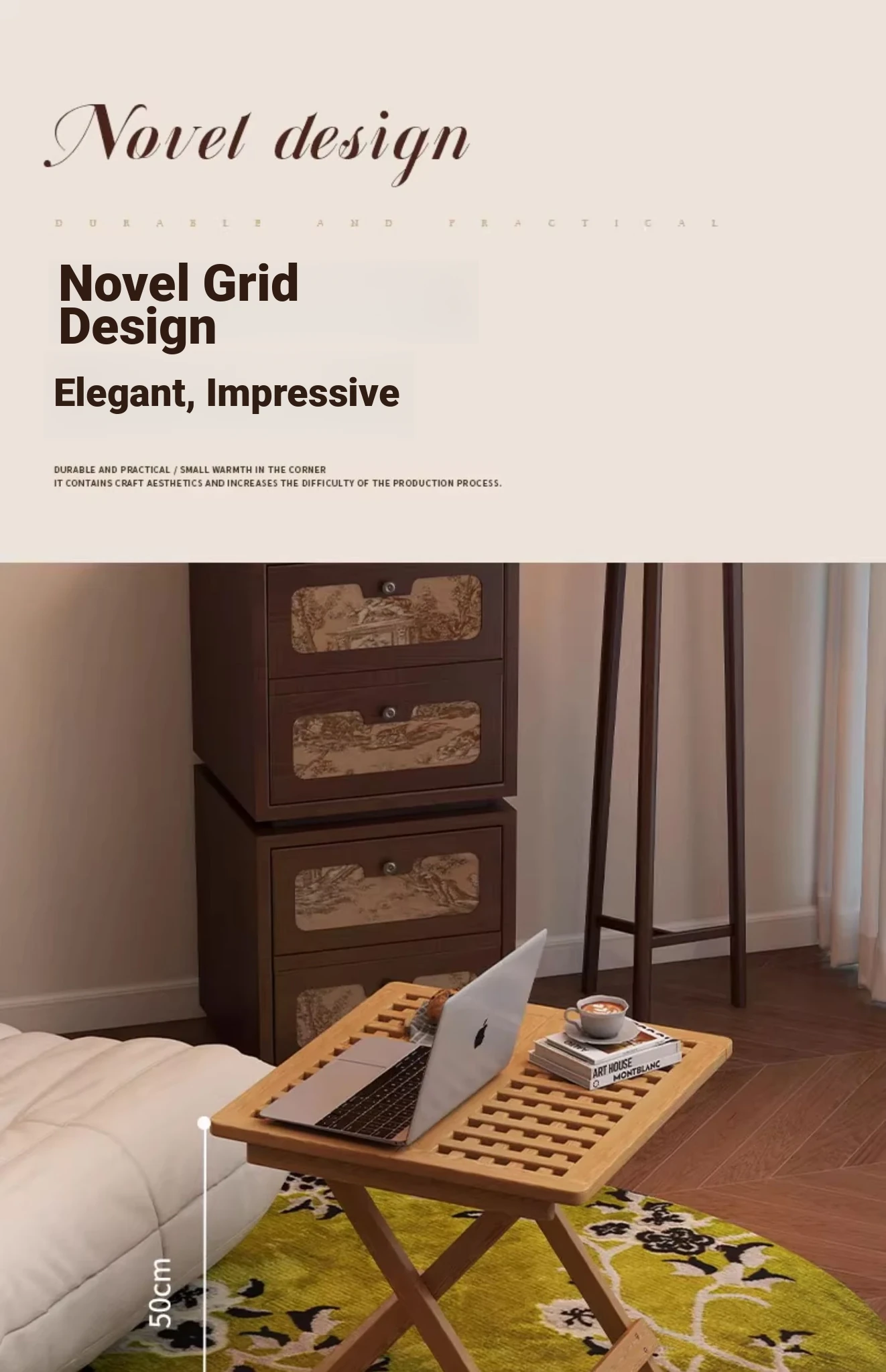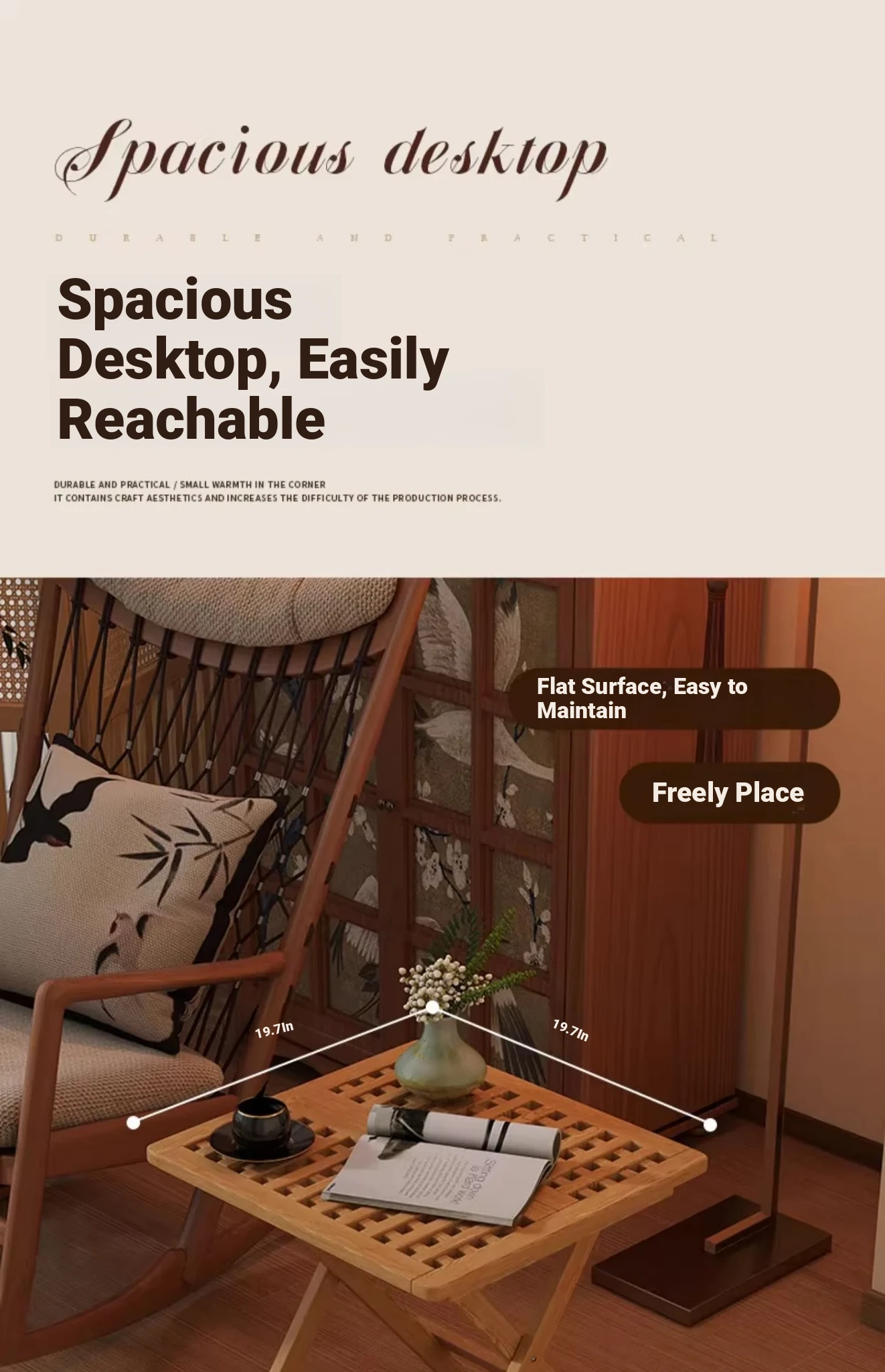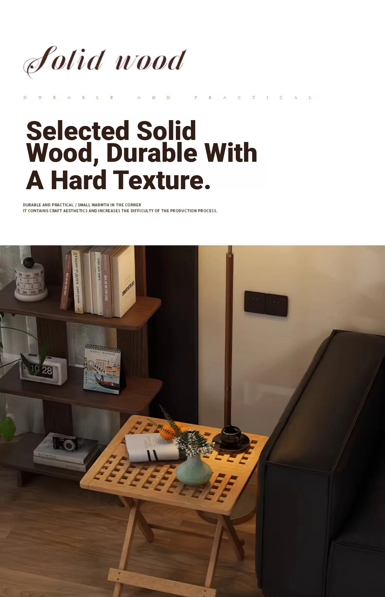 Rustic Solid Wood Folding Table - Portable Grid Tea Table for Bedroom, Simple Nightstand, and Balcony, Ideal Small Tea Desk for Cozy Spaces