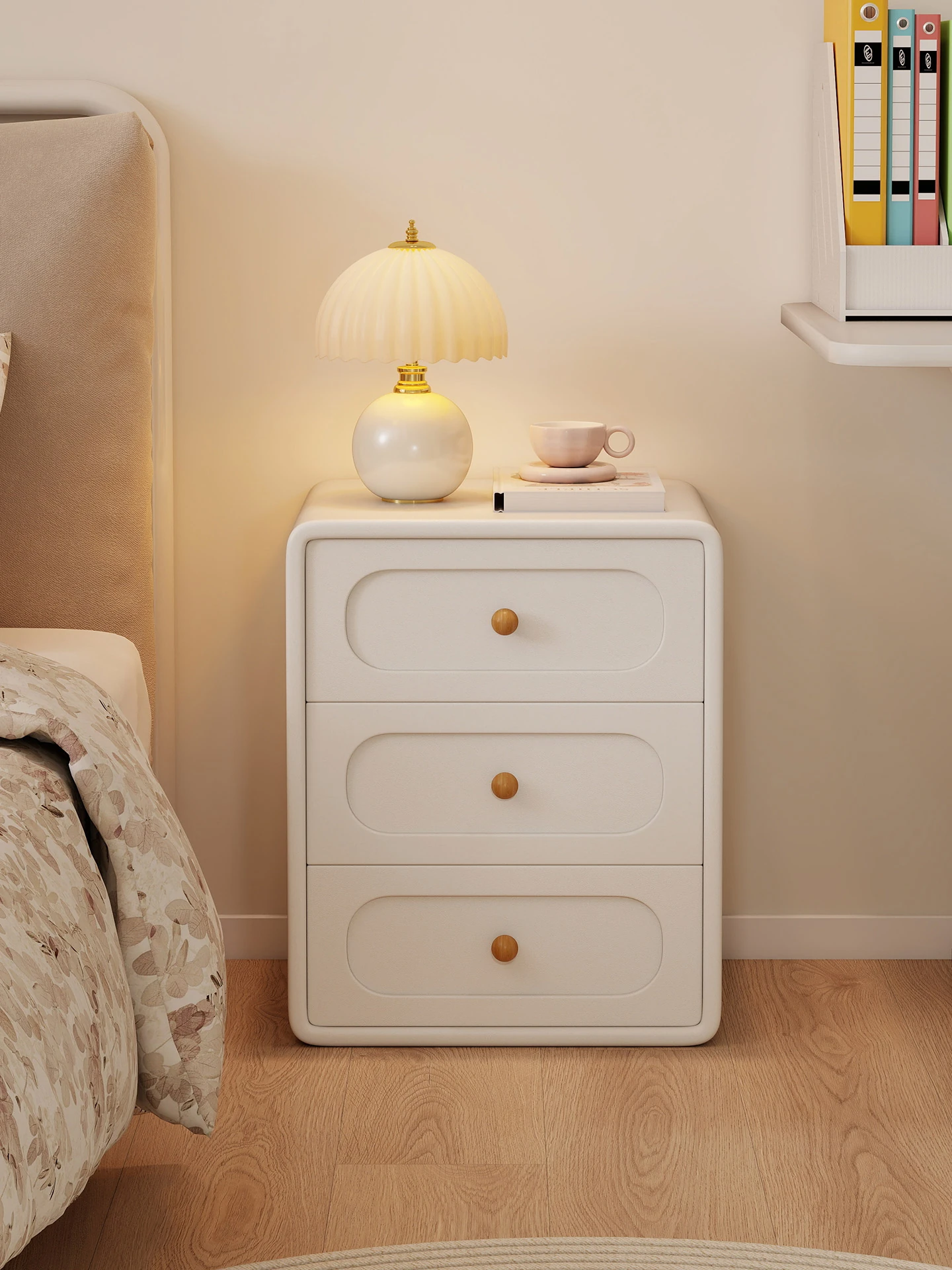 Modern Minimalist Cream Bedside Table - Small Solid Wood Nightstand for Bedroom, Perfect for Kids' Rooms - 2025 New Storage Solution