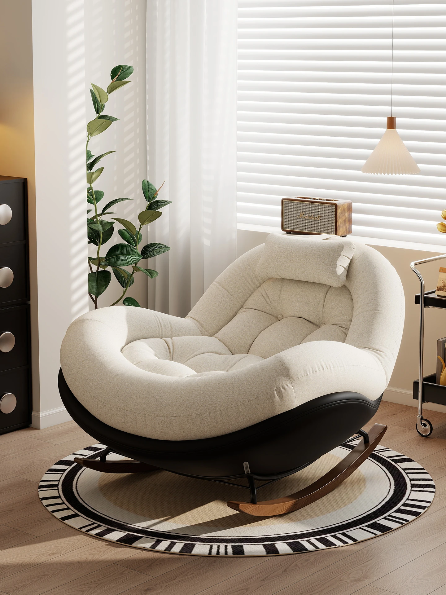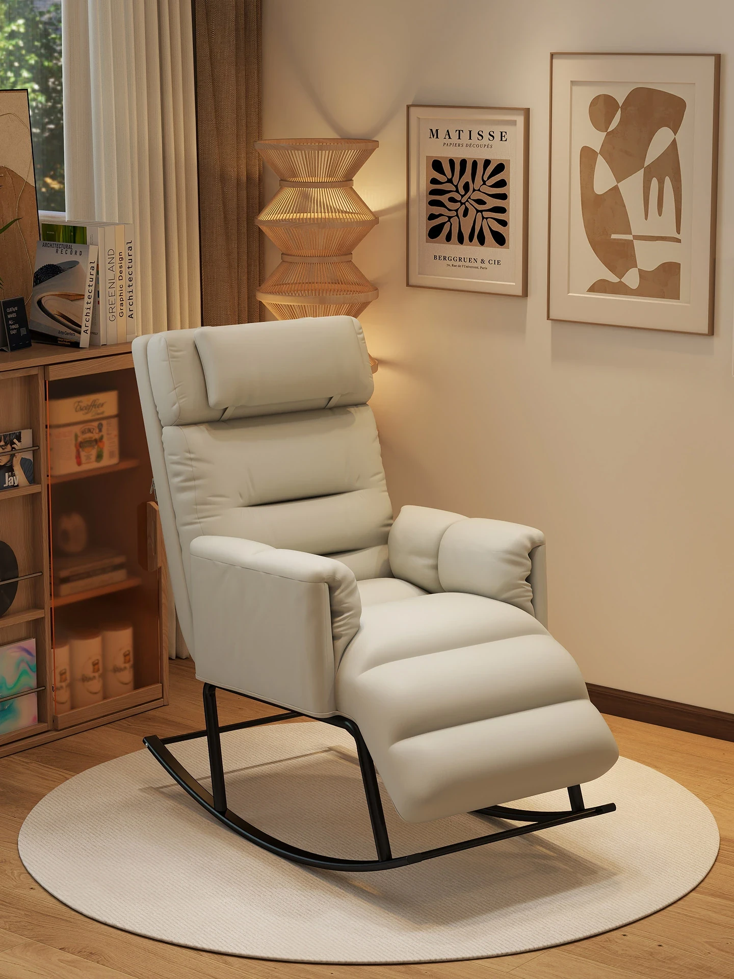 Modern Minimalist Rocking Chair for Living Room and Balcony - Cozy Lounge Chair, Perfect for Small Spaces, Relax in Style with This Single Sofa Chair