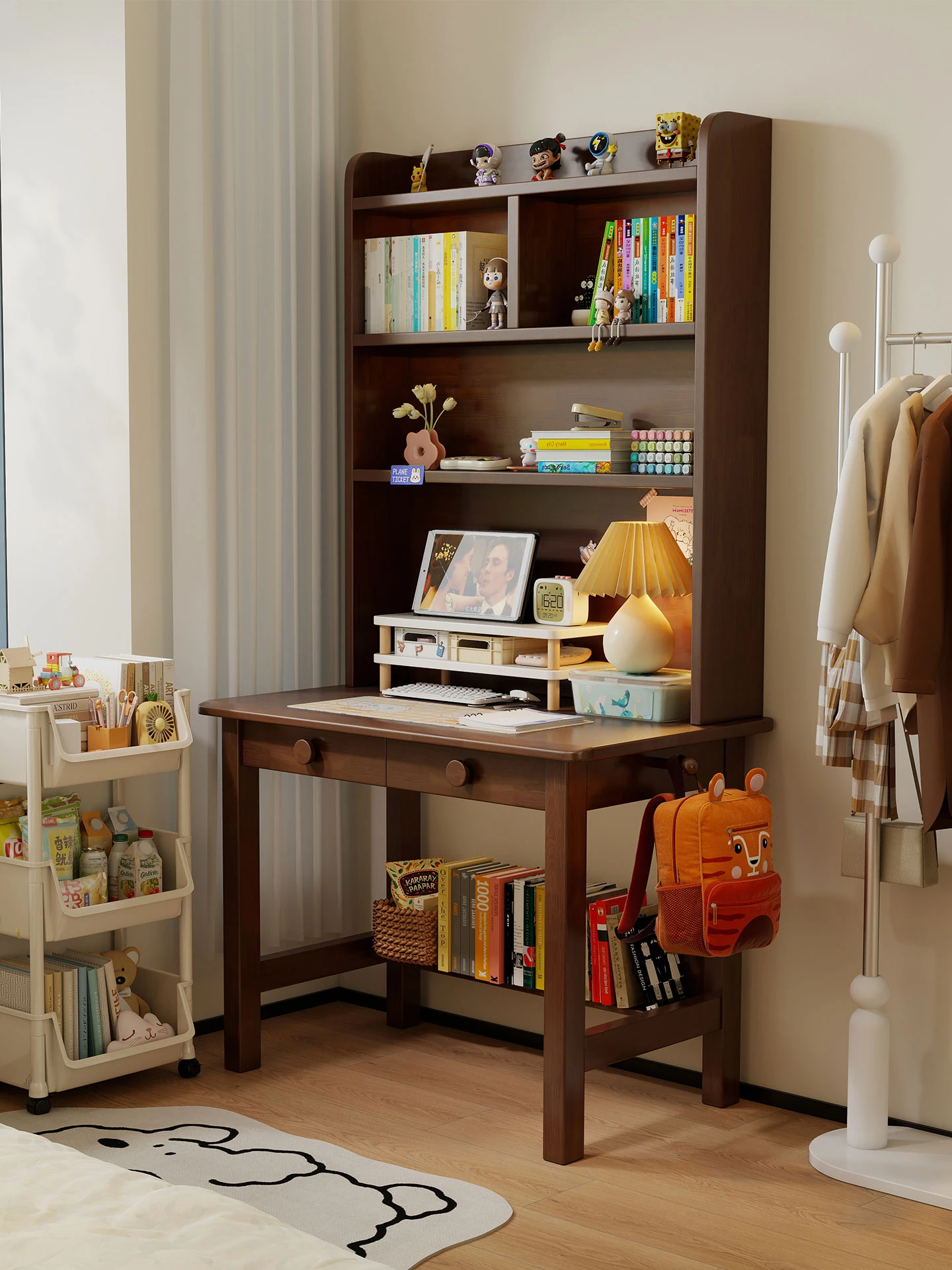 Compact Solid Wood Study Desk with Bookshelf - Ideal Writing Table for Middle and High School Students, Perfect for Small Bedrooms and Bedside Use