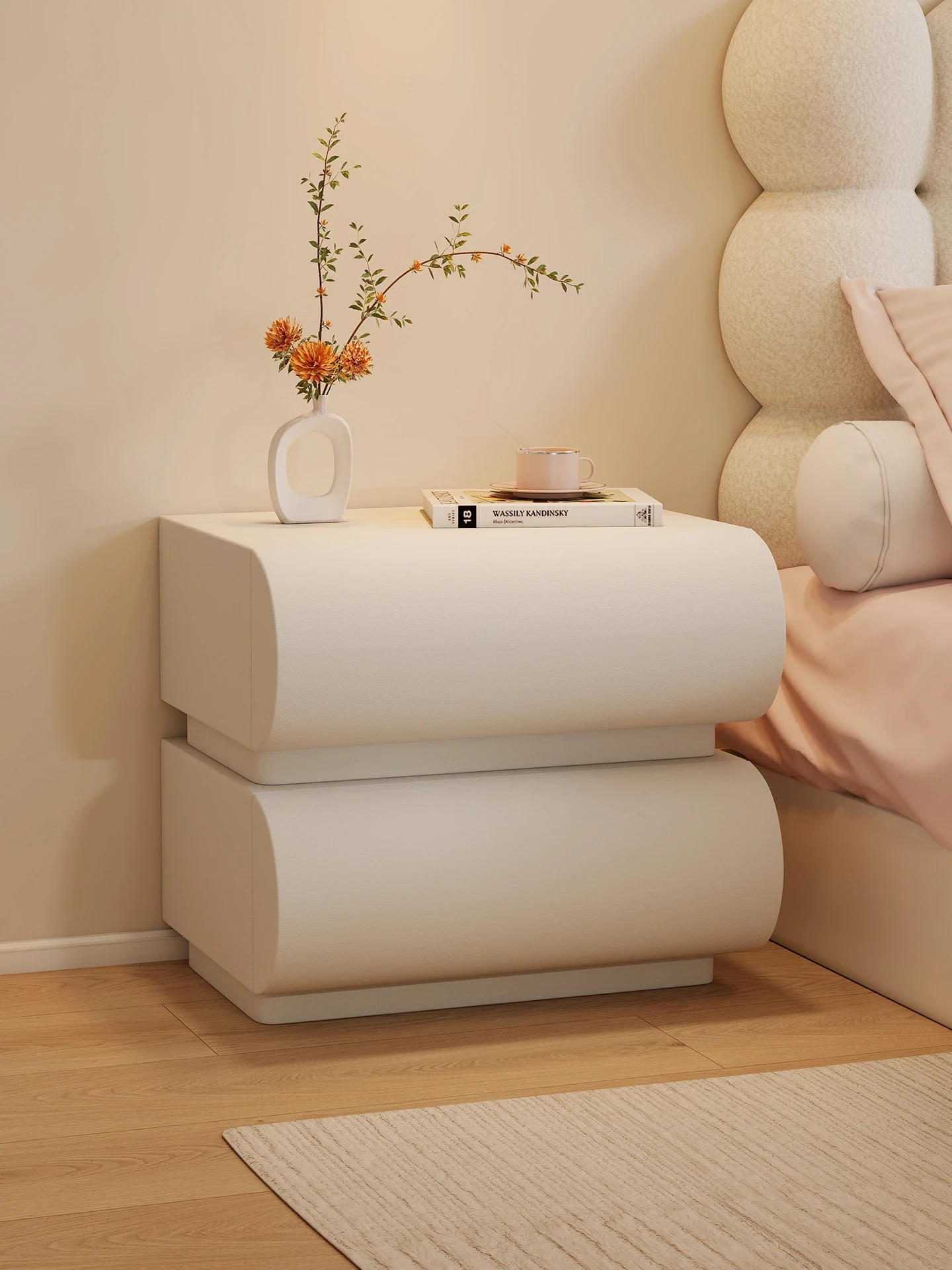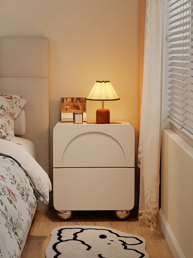 Creamy Wooden Bedside Table - Trendy and Creative Small Nightstand for Bedroom, Elegant Luxury Feel, White Storage Cabinet