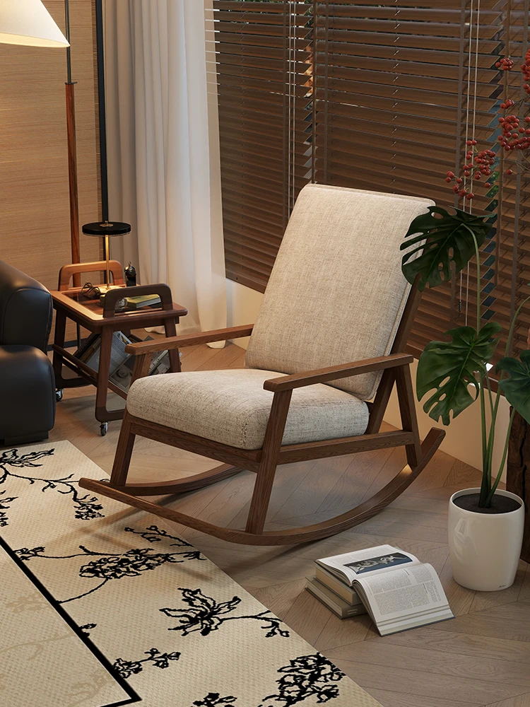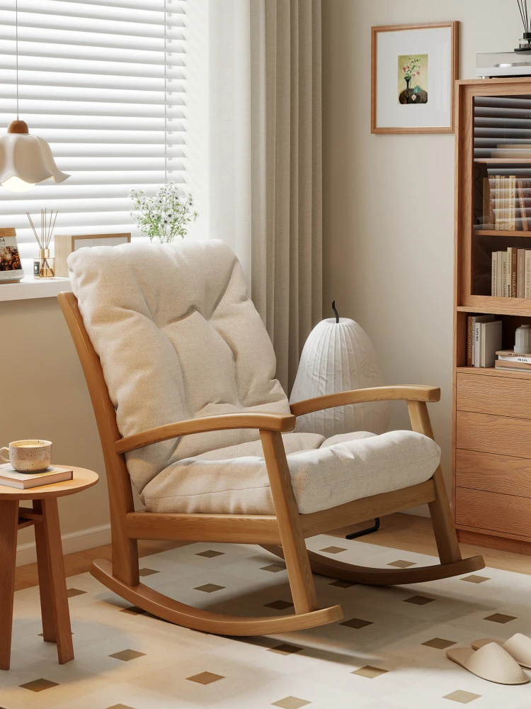 Modern Minimalist Solid Wood Rocking Chair - Single Sofa for Living Room, Relaxing Lounger for Small Spaces and Balconies, Comfortable Backrest Chair