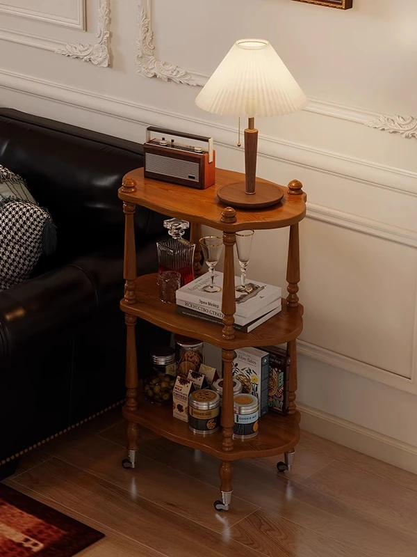 Vintage American Solid Wood Side Table - Movable Coffee Table for Small Living Rooms, Multi-Layer Open Shelving Unit for Corner Spaces - Perfect for Stylish Storage and Display