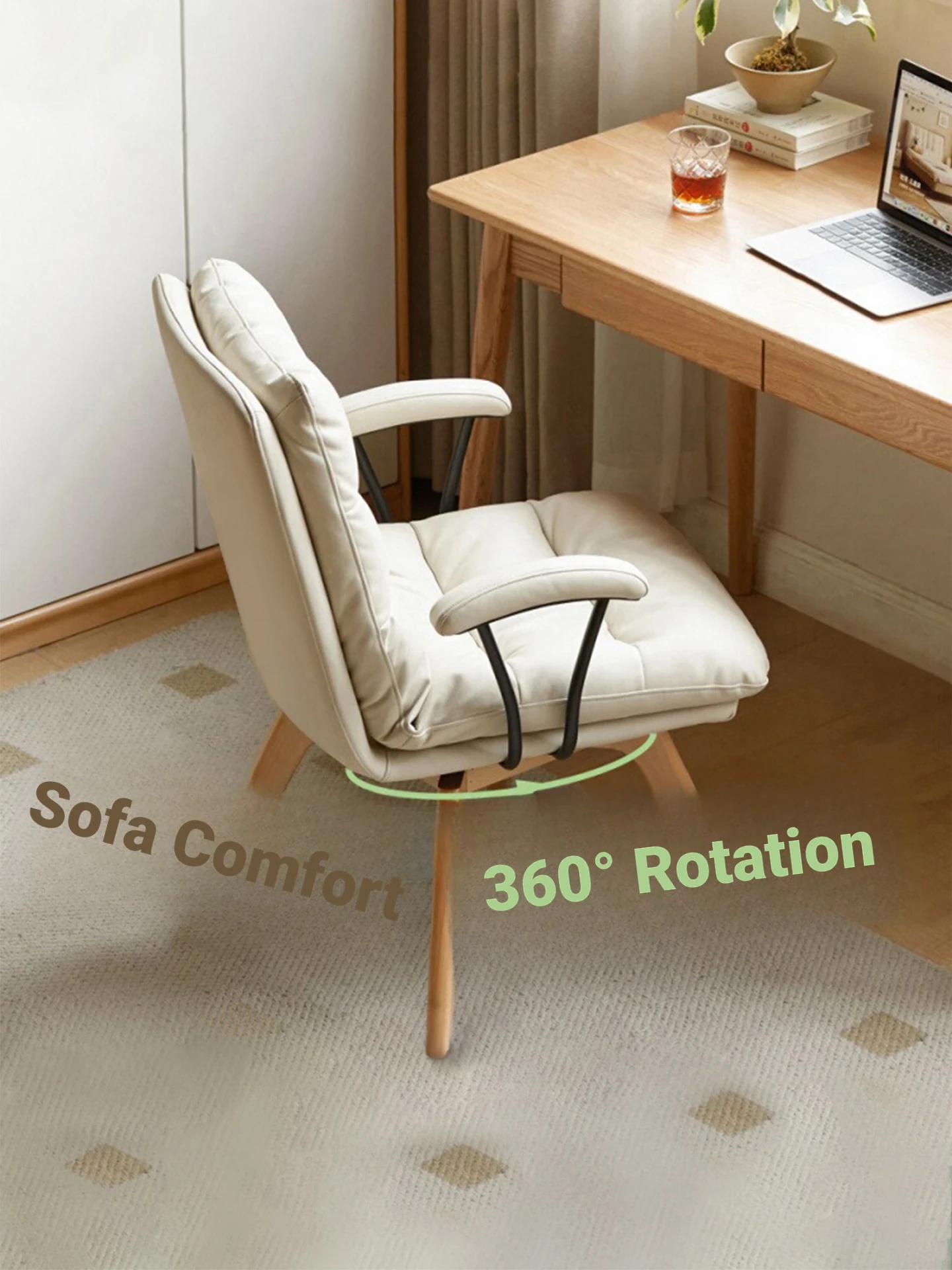 Ergonomic Swivel Office Chair with Solid Wooden Legs - Comfortable for Home, Study, and Dorm Use - Perfect for Long Hours of Relaxation and Supportive Backrest