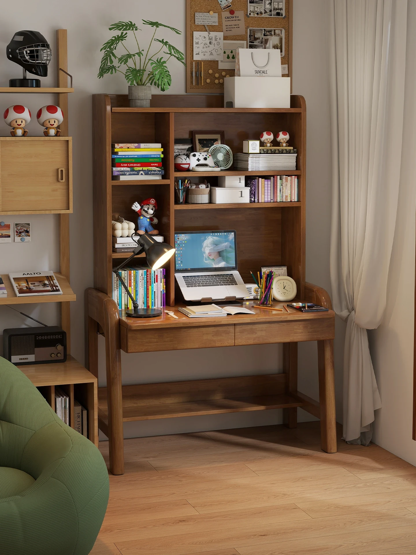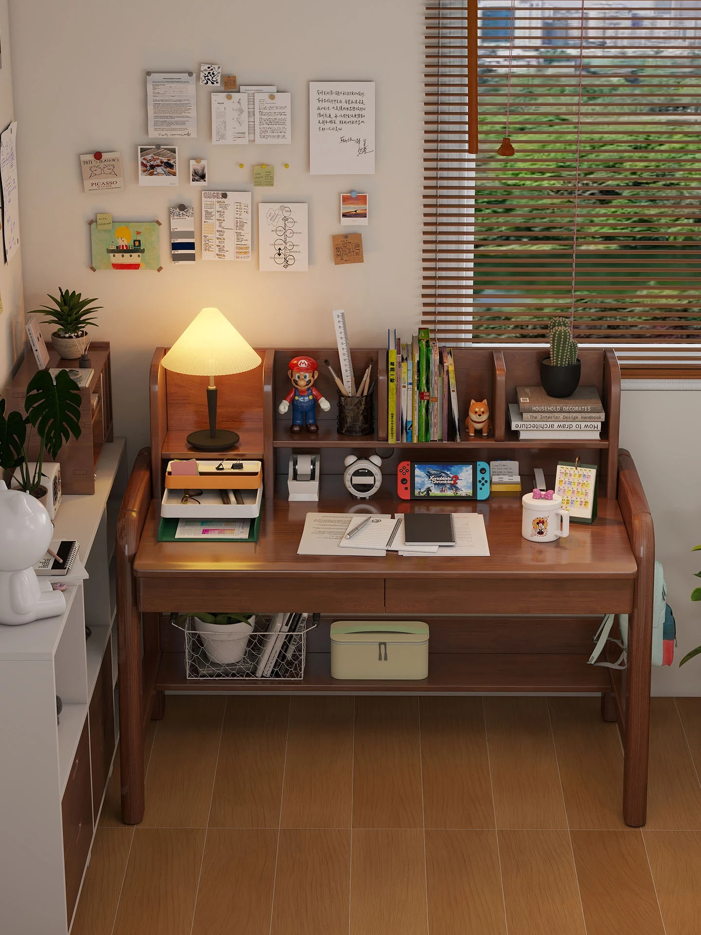 Solid Wood Children's Study Desk with Bookshelf - Perfect for Home, Bedroom, and Office! Ideal Writing and Reading Table for Middle School Students.