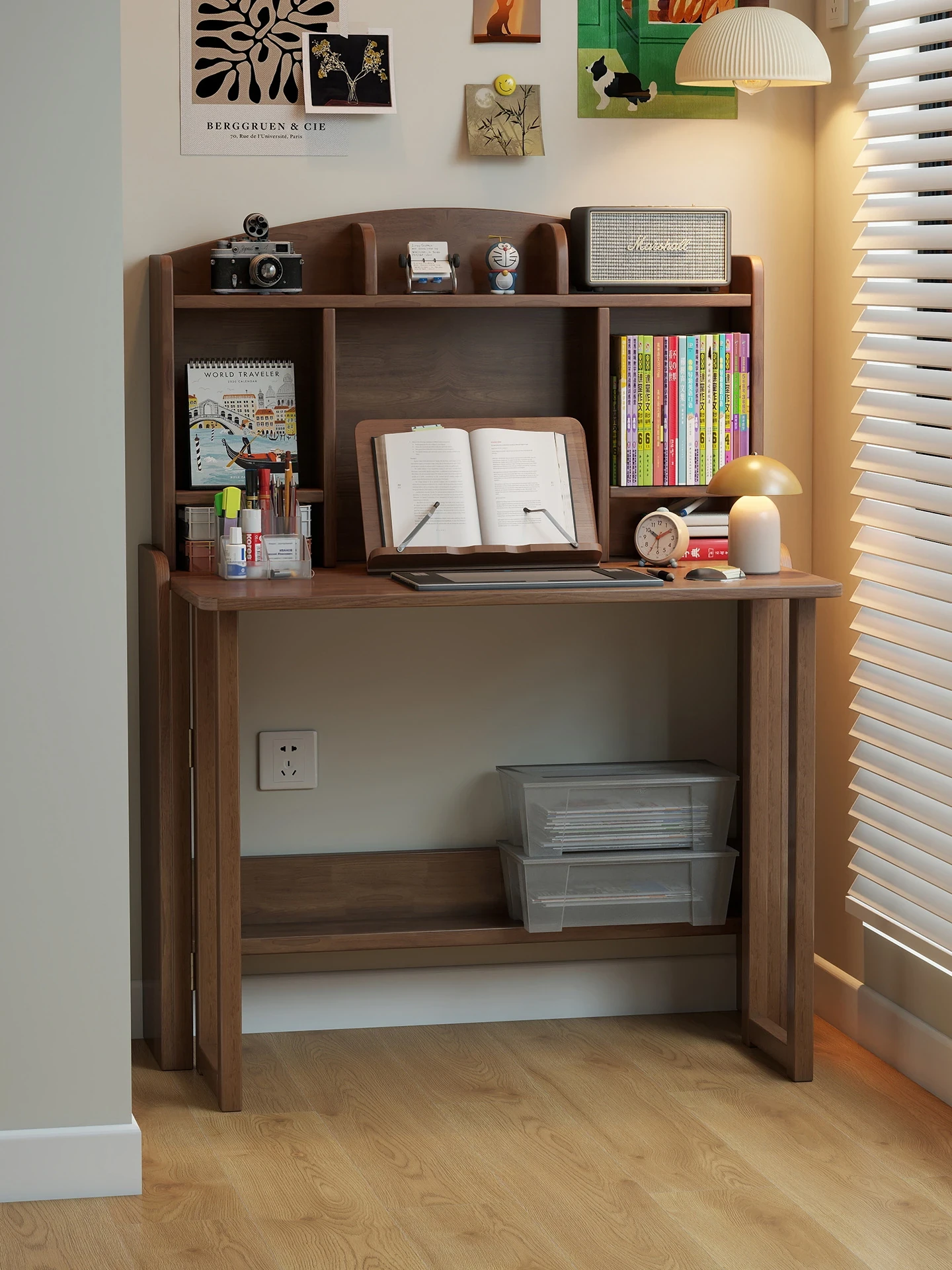 Foldable Student Writing Desk with Bookshelf - Compact Solid Wood Study Table for Small Spaces, Perfect for Balconies and Homework