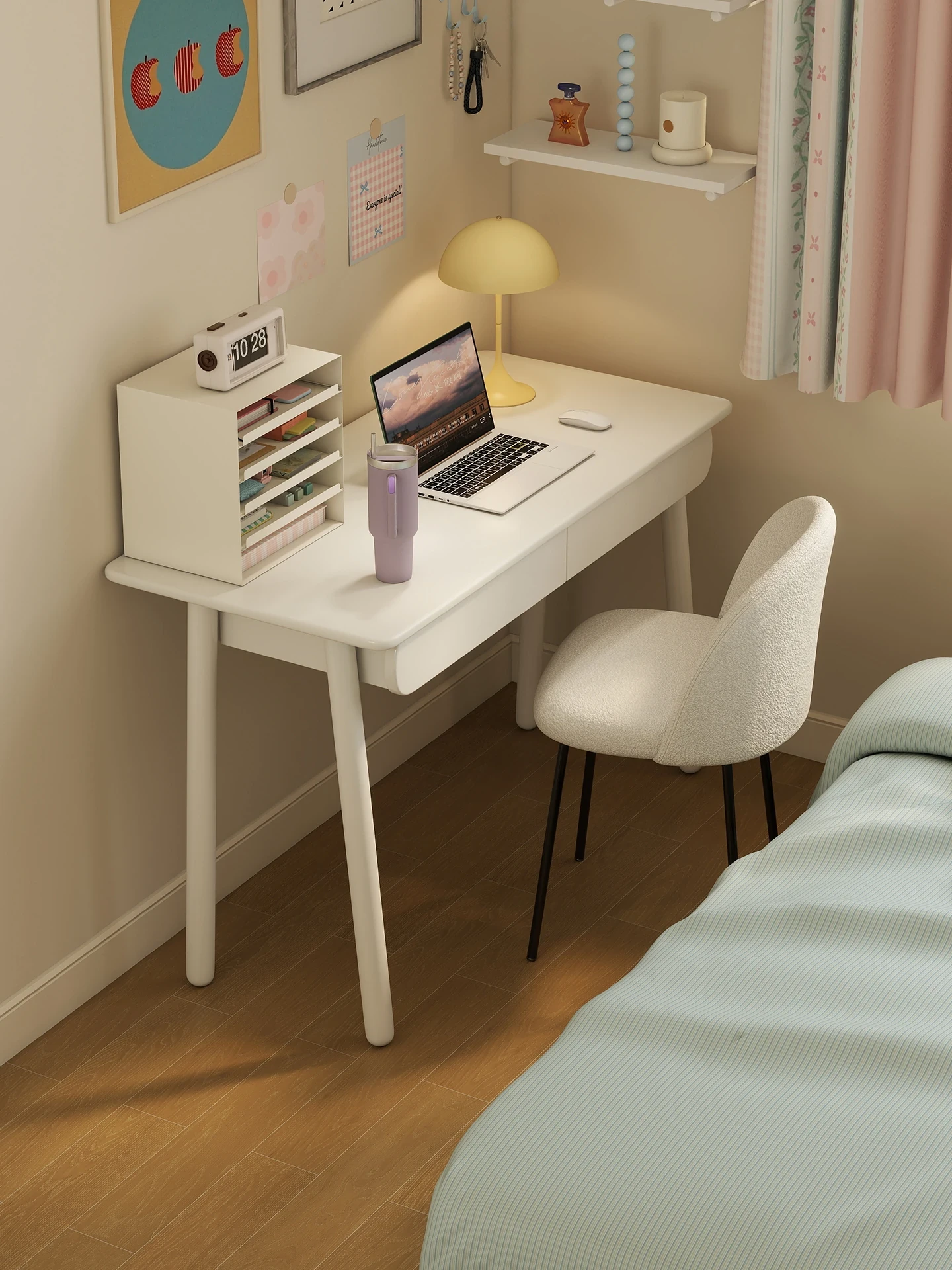 Creamy Wooden Desk with Drawers - Stylish Computer Writing Table for High School and College Students, Ideal for Home Study, INS Aesthetic