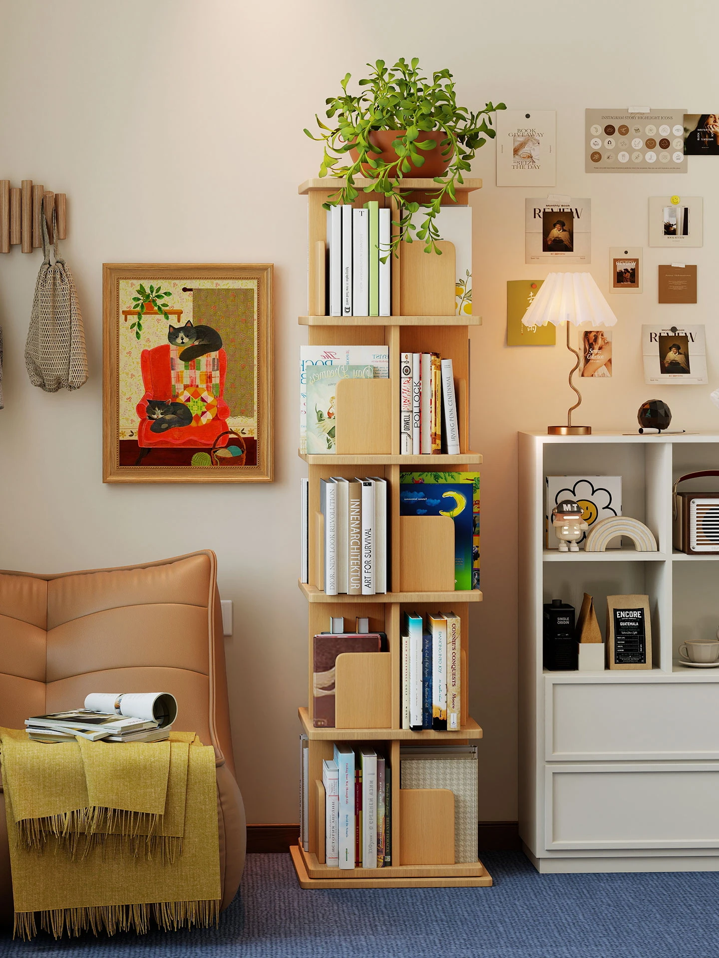 360-Degree Rotating Solid Wood Bookshelf - Large Capacity Floor Storage Rack for Living Room, Bedroom, and Students - Easy Organization Solution