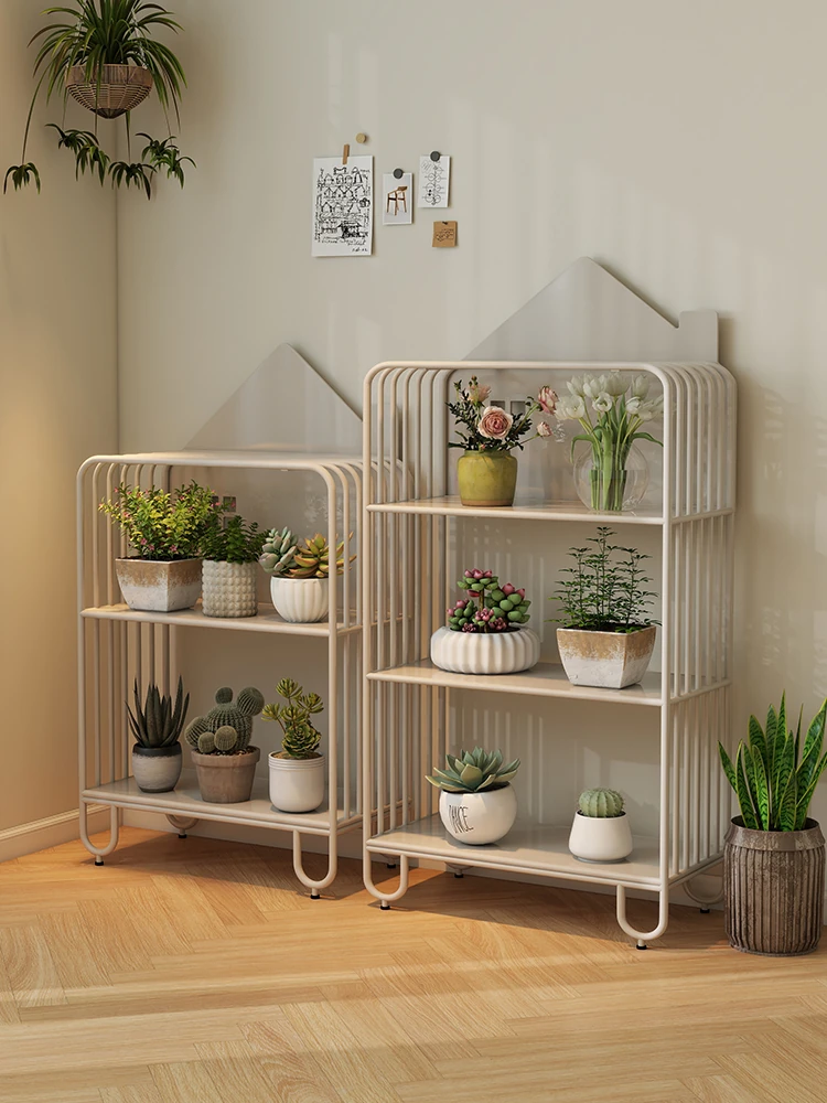 Multi-Tiered Plant Stand - Spacious Creamy Minimalist Floor Plant Rack for Balcony & Living Room, Elegant Iron Design for Stylish Home Decor