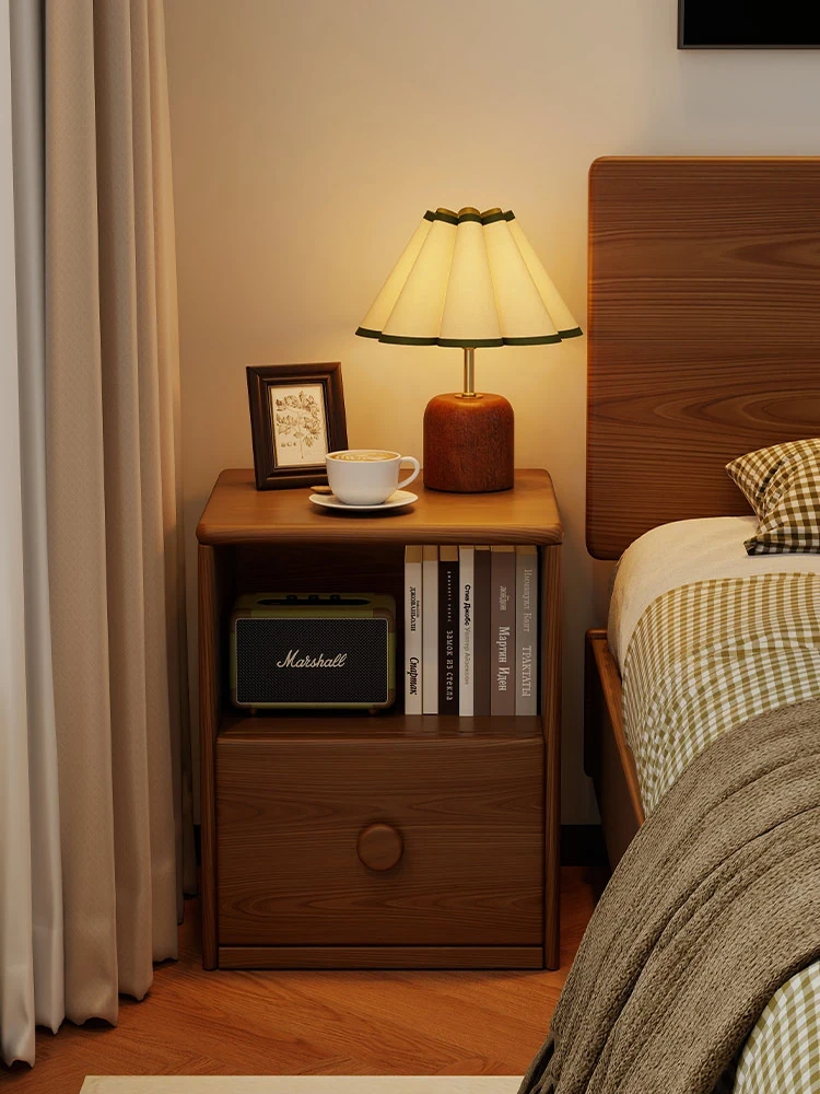 Vintage Minimalist Solid Wood Nightstand - Compact Bedroom Storage Cabinet for Home Use, Perfect for Organizing Essentials and Enhancing Your Bedroom Aesthetic.