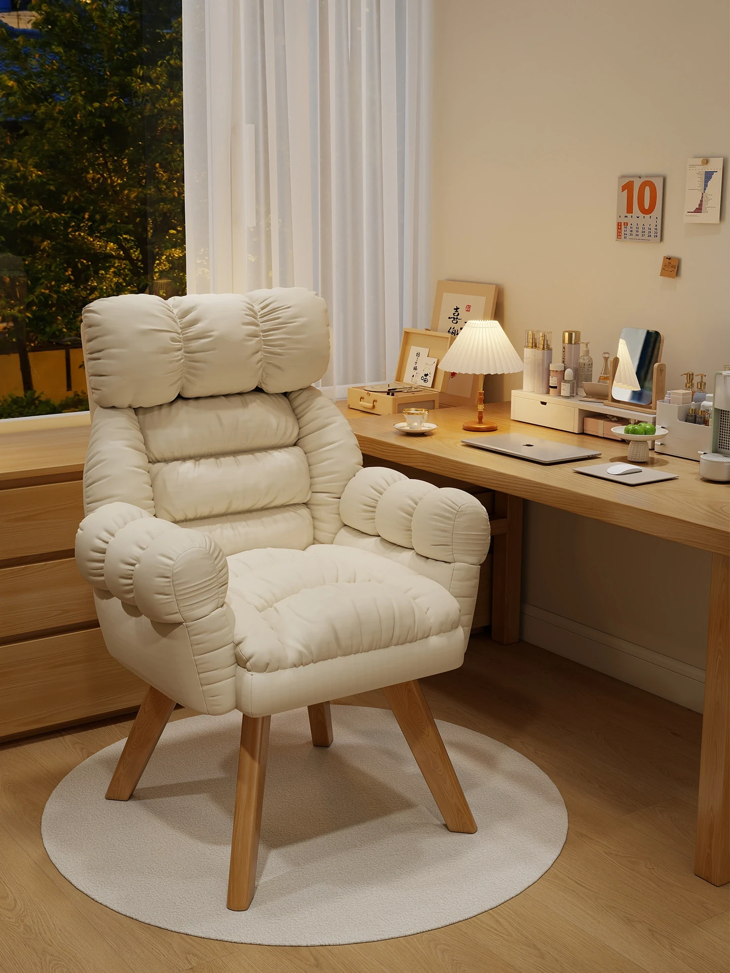 Comfortable Lazy Sofa Chair with Wooden Legs - Rotatable Home Office Desk Chair for Long Hours of Relaxation and Supportive Backrest