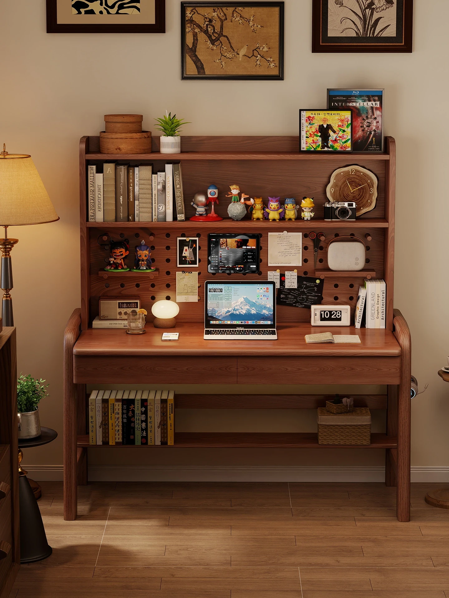 Adjustable Solid Wood Desk and Bookshelf Combo - Perfect Study Table for High School Students with Pegboard Design - Ideal for Writing and Computer Use