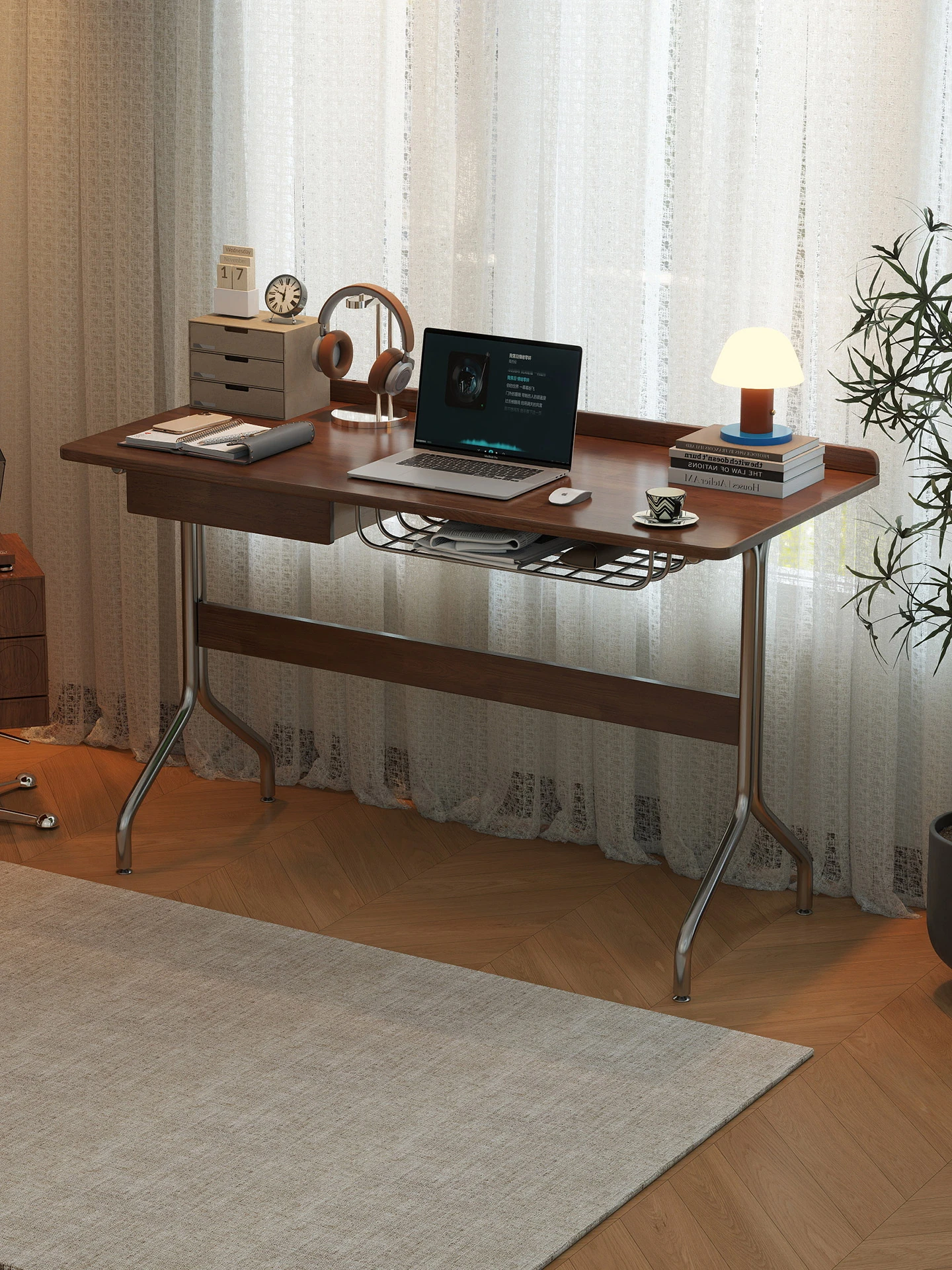 Compact Japanese Style Vanity Table with Mirror and Storage – 60CM Minimalist Makeup Desk for Small Spaces, Perfect as a Makeup Station or Study Desk