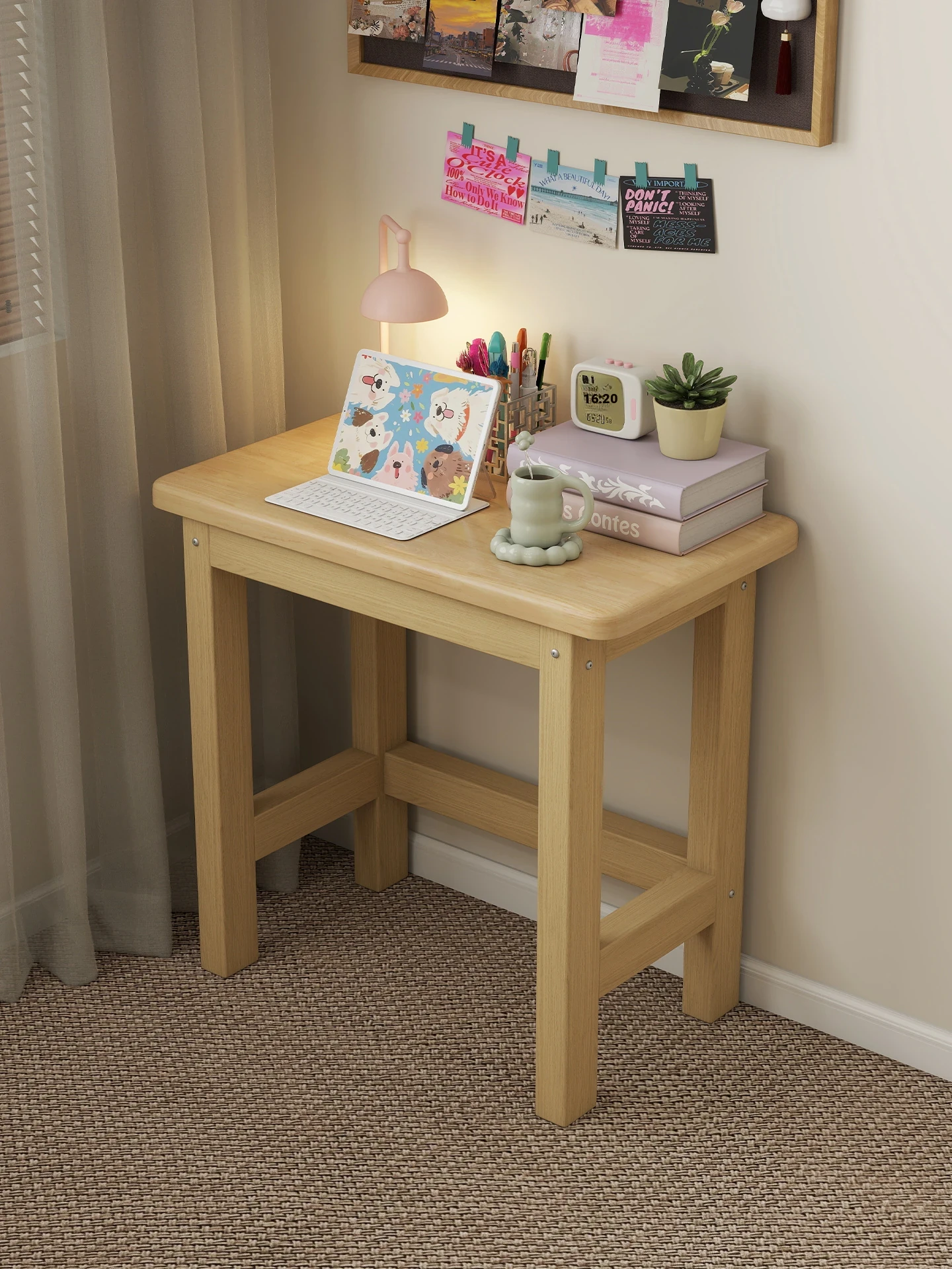 Solid Wood Small Desk for Bedroom - Compact Nightstand Study Table for Middle and High School Students, Ideal Writing and Home Computer Desk