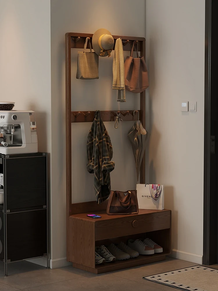 Multifunctional Solid Wood Coat Rack and Shoe Bench - Stylish Entryway Organizer for Home, Perfect for Changing Shoes and Storing Coats at the Door.