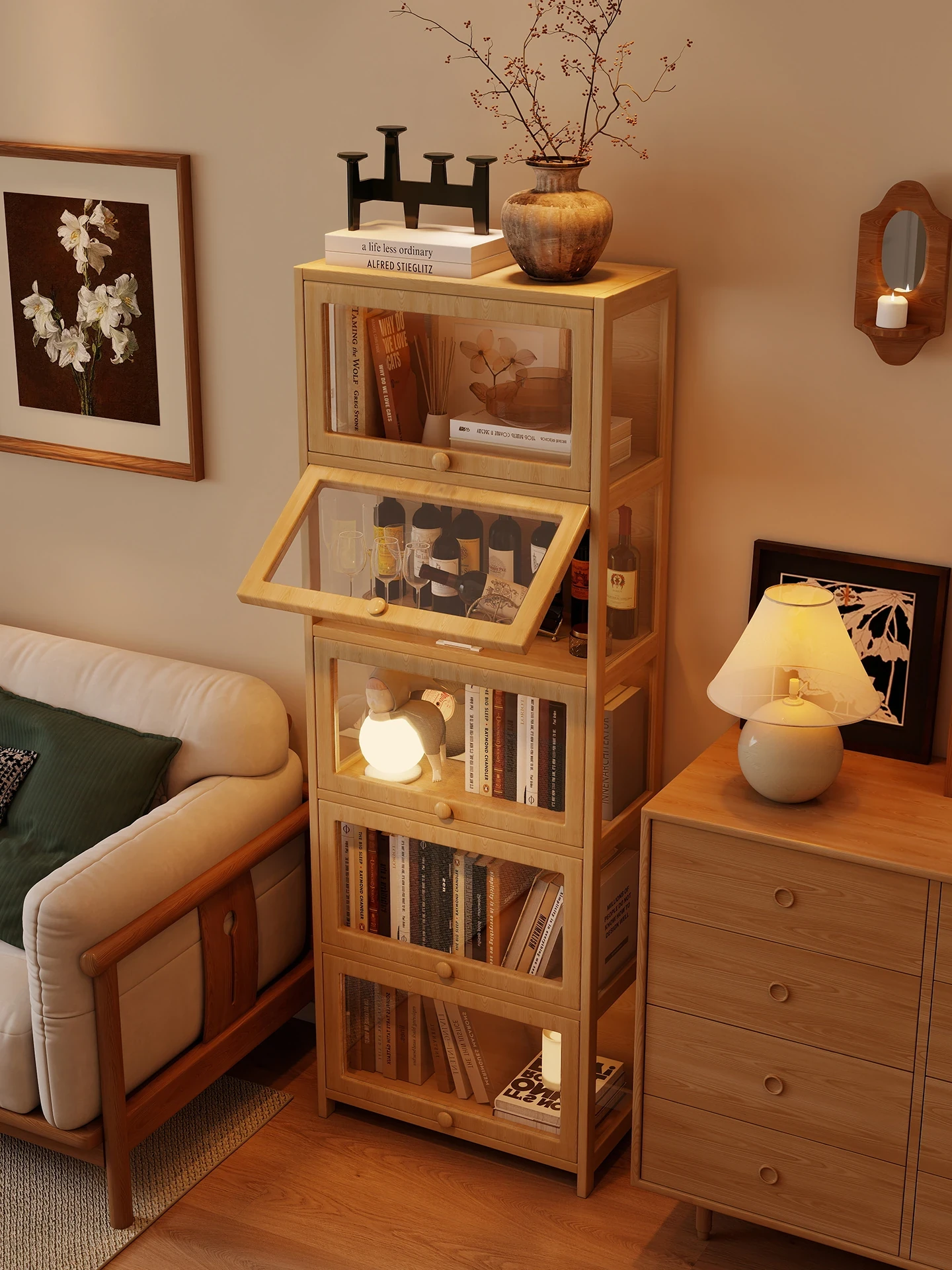 Rustic Solid Wood Bookshelf - Multi-Layer Floor Storage Rack for Living Room, Bedroom Organization, and Home Display Cabinet. Perfect for Stylish Storage and Décor!