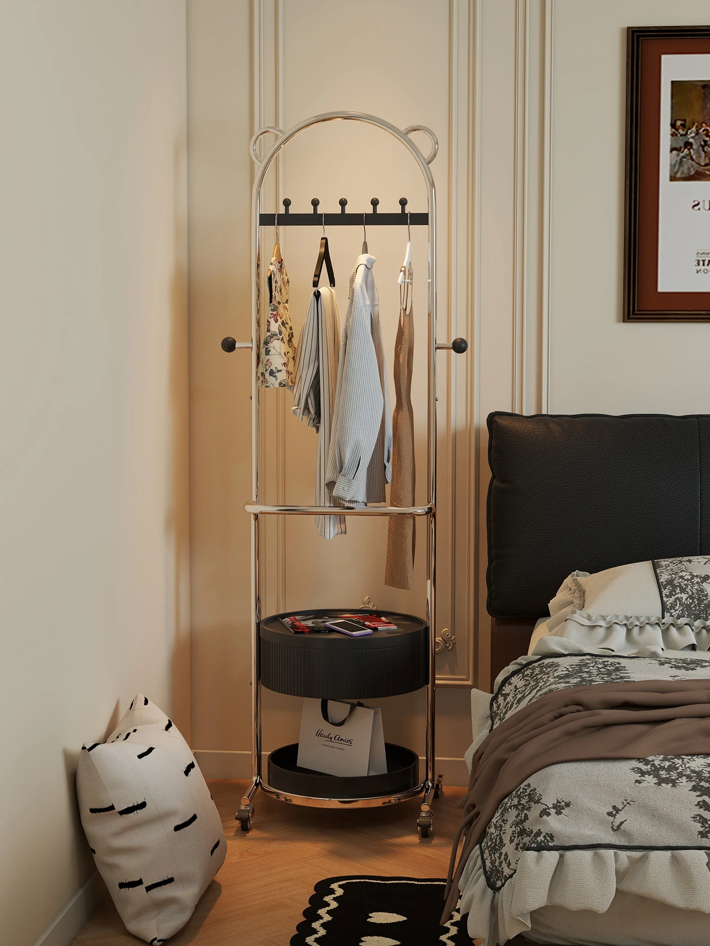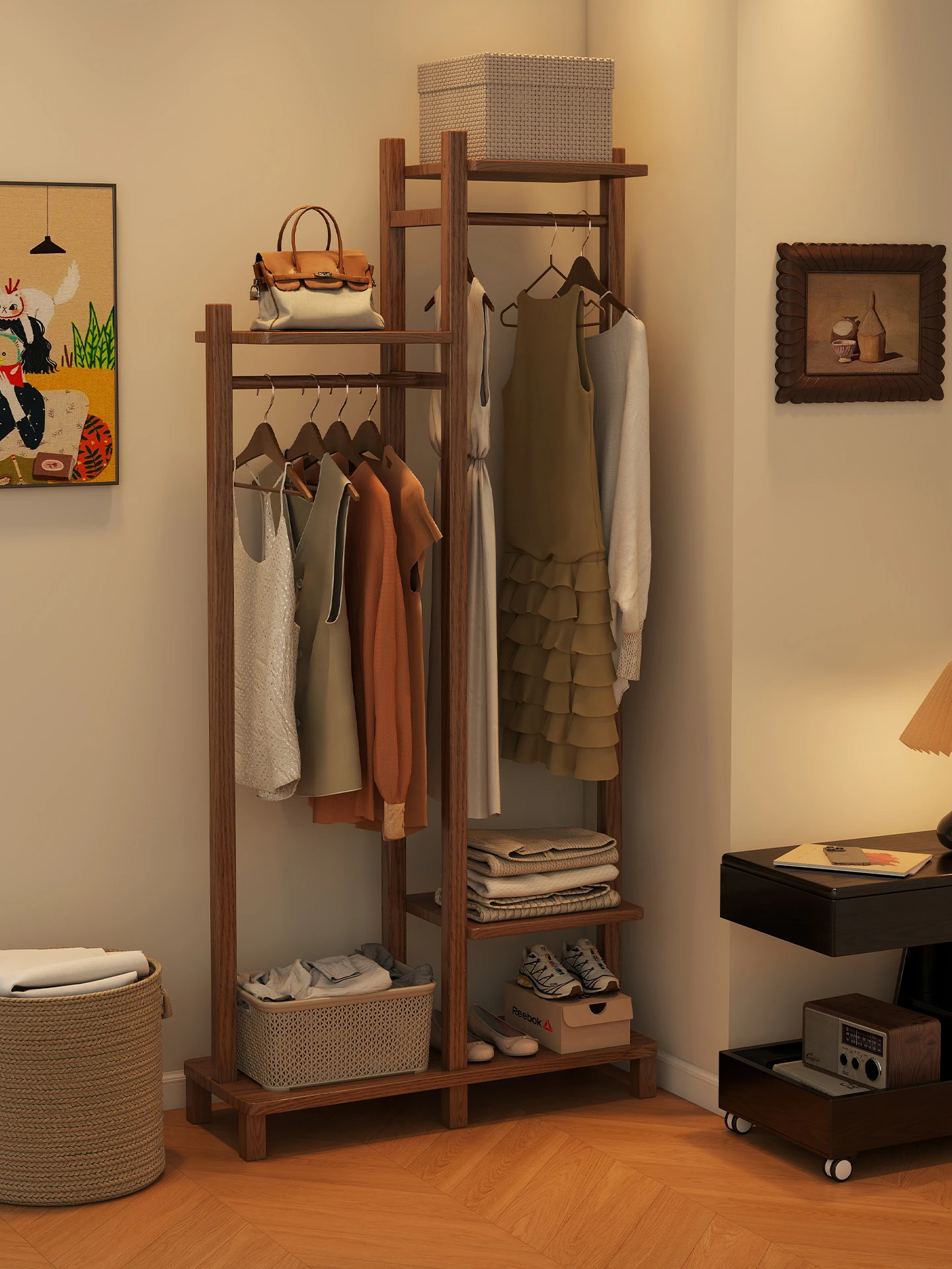 Wooden Portable Coat Rack - Space-Saving Floor Hanger for Bedroom, Ideal for Clothes and Accessories Storage by Your Bed