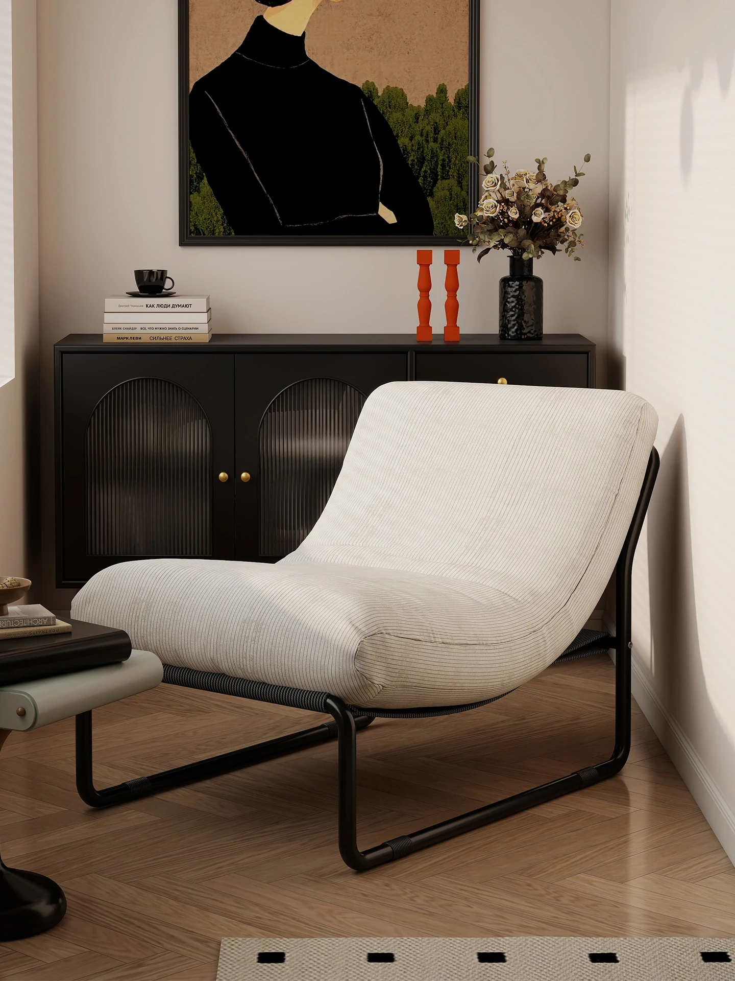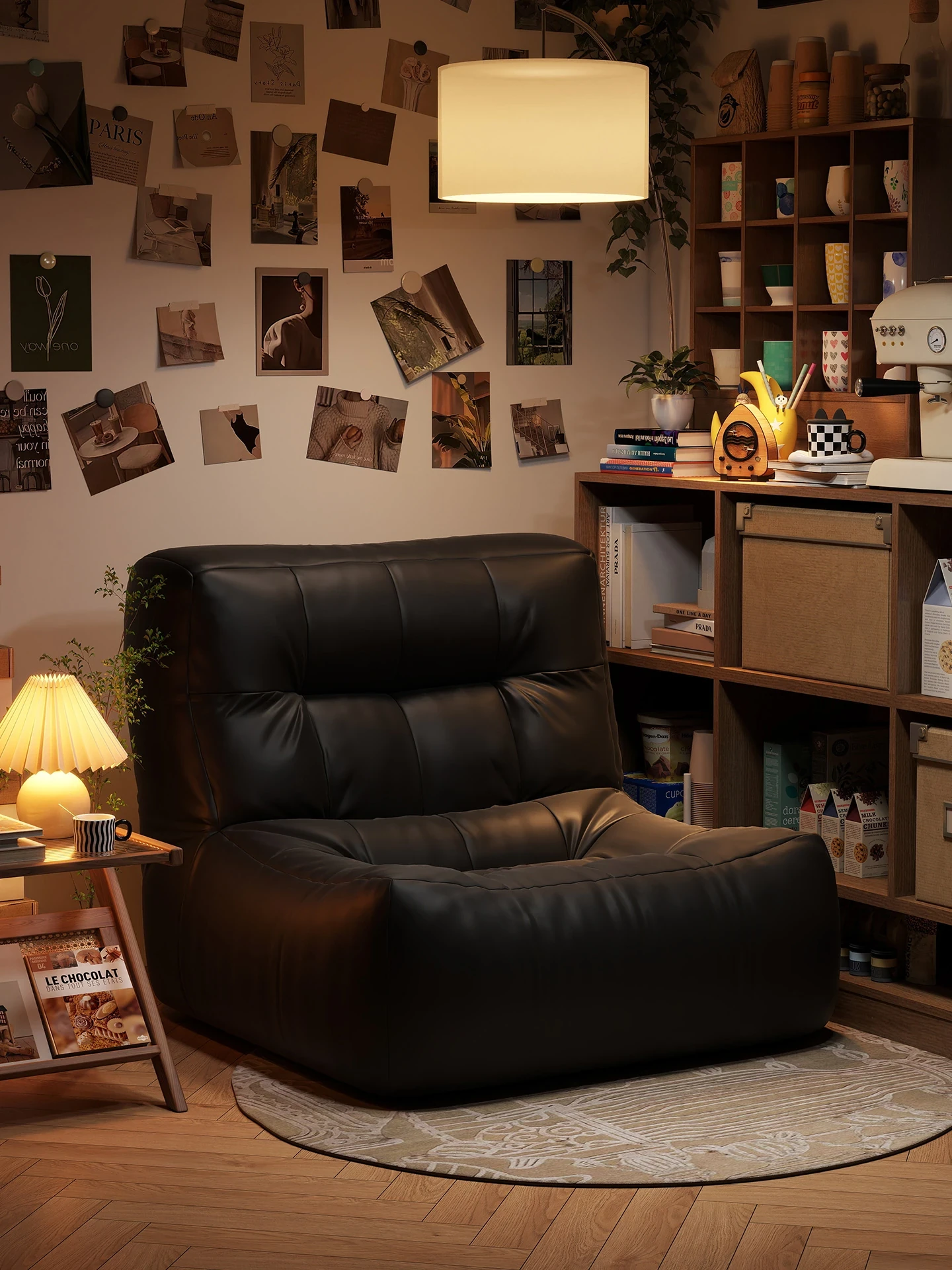 Vintage Black Lazy Sofa Chair - Compact Tatami Lounge Chair for Bedroom and Balcony, Perfect for Relaxation in Any Room