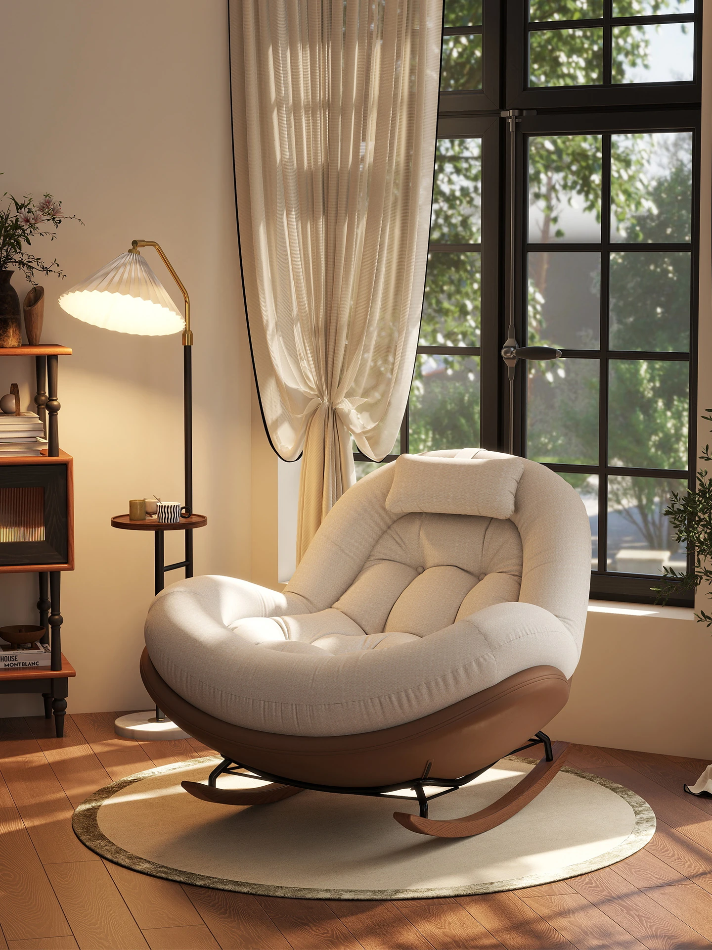 レトロな揺り椅子ソファ 大人用リクライニングチェア 家庭用リビングやバルコニーに最適!くつろぎながら寝転べる、リラックスした時間を提供するゆったりとしたデザインのラウンジチェア。