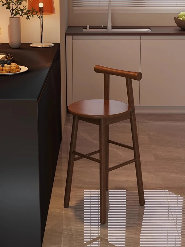中古天然木製バースツール 家庭用アイランドカウンター用ハイチェア レストランに最適な背もたれ付きハイスツール バタフライデザインのバースツールでおしゃれな空間を演出!