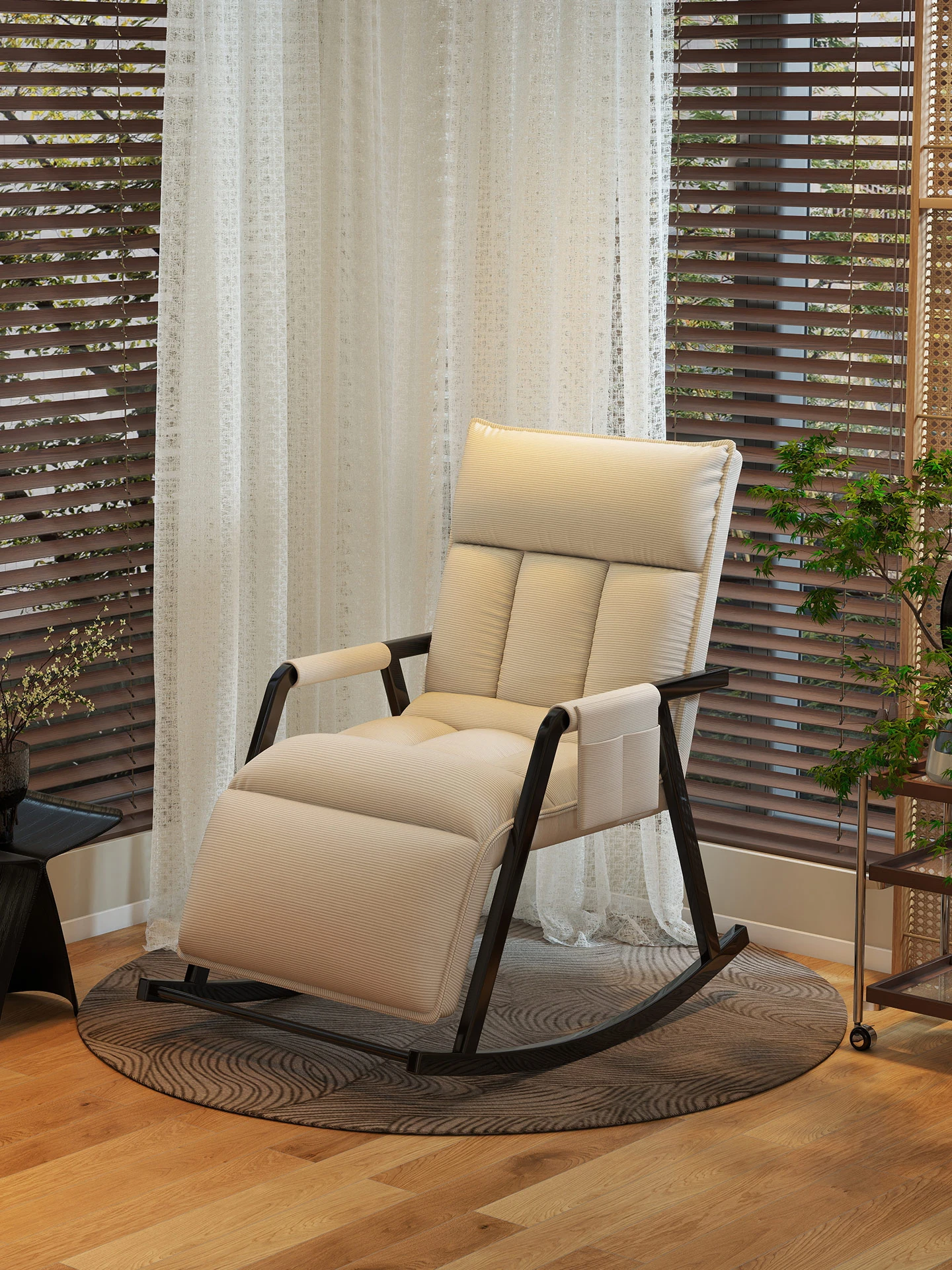 モダンシンプルな一人用ロッキングチェア|リビングやバルコニーに最適!快適なリラックスタイムを提供するミニマルデザインの休憩椅子。小さなスペースにもピッタリな、心地よい背もたれ付きのロッキングチェア!