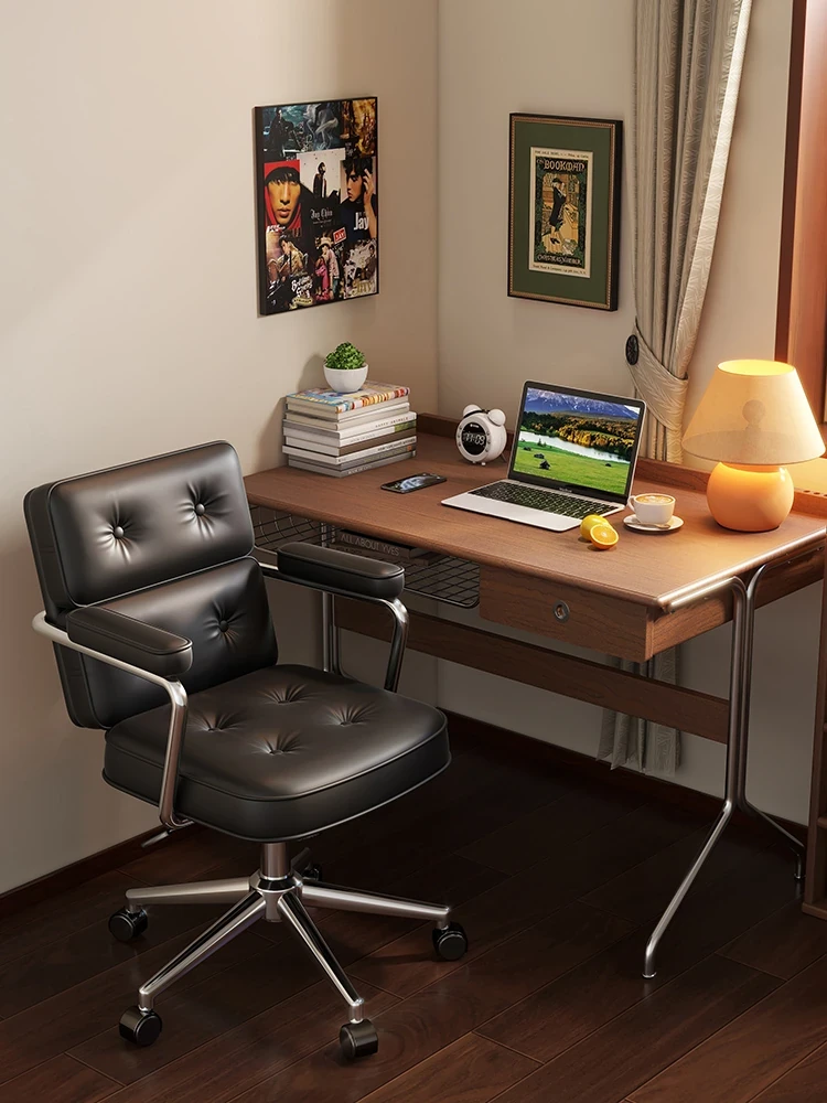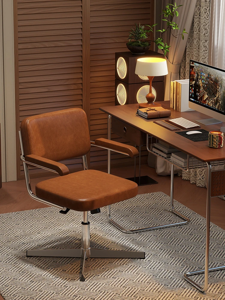 中古軽奢スタイルのホームオフィスチェア - 快適な昇降式回転椅子、書斎や寝室に最適!おしゃれで機能的なデザインで、仕事や読書をより楽しく!