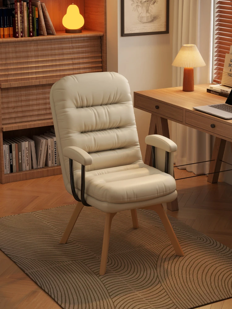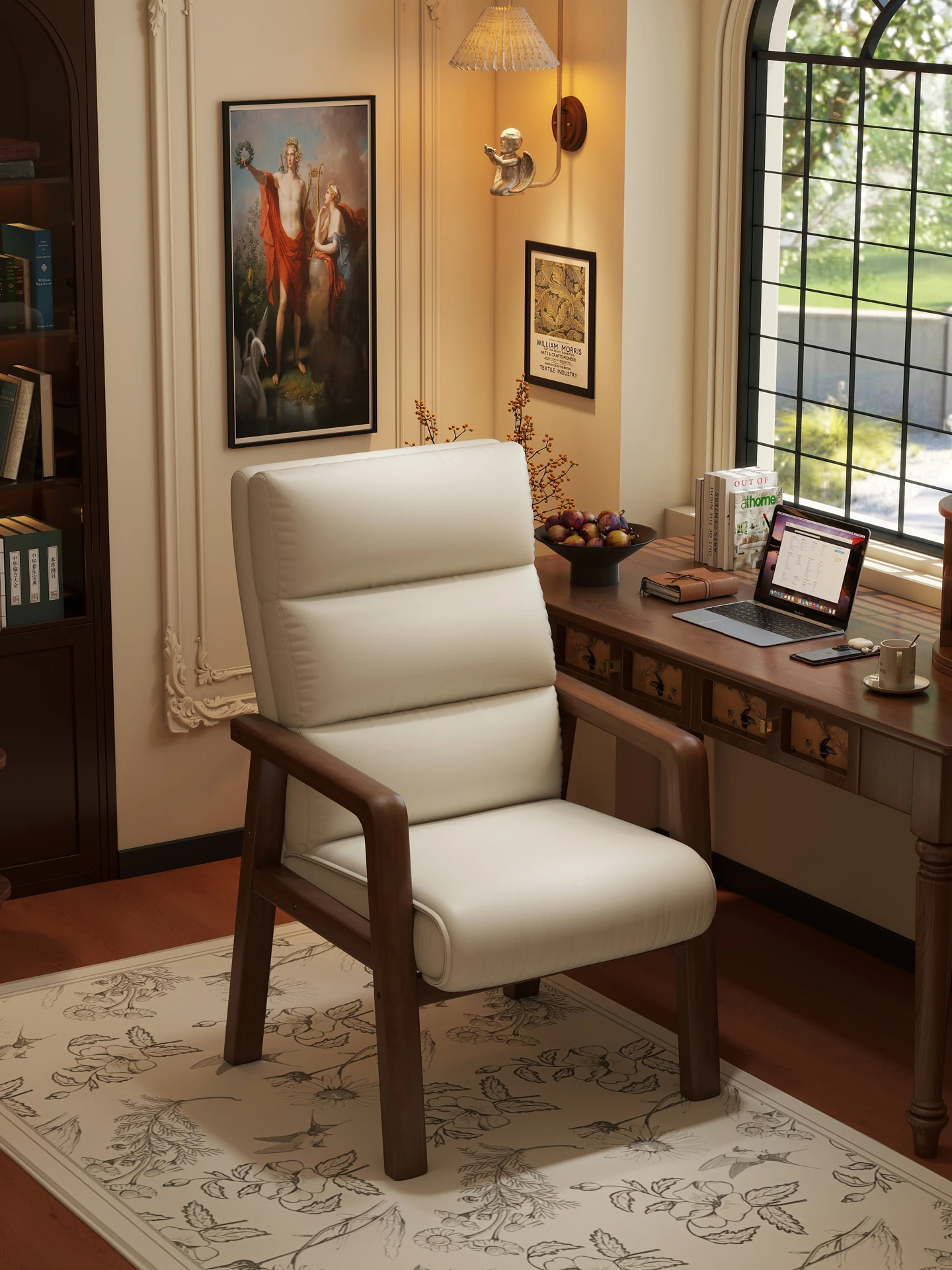 快適な座り心地!高品質の無垢材を使用した固定脚のコンピューターチェア。書斎やオフィスにぴったりで、長時間の読書や仕事にも最適なリラックスソファチェア。あなたの生活空間をスタイリッシュに演出します!