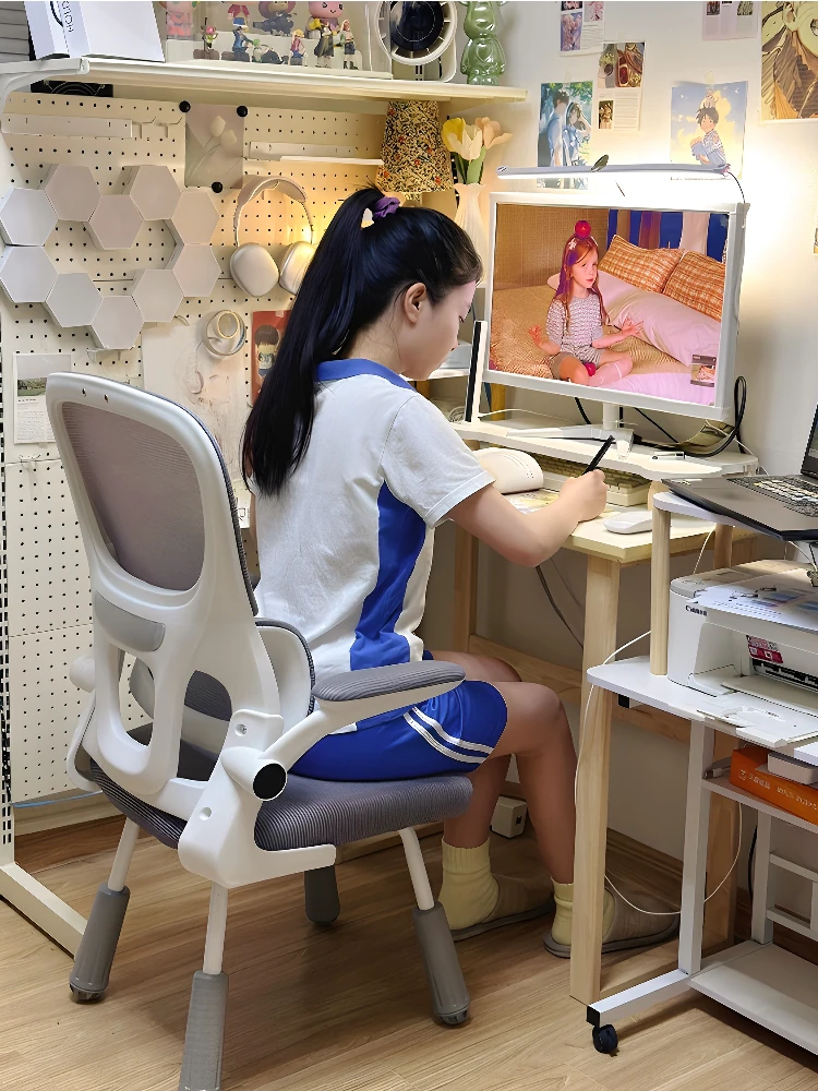 中小学生向けの快適な学習用デスクチェア|長時間座っても疲れない!エルゴノミクスデザインで腰をしっかりサポート|自宅学習やオンライン授業に最適な書斎用チェア