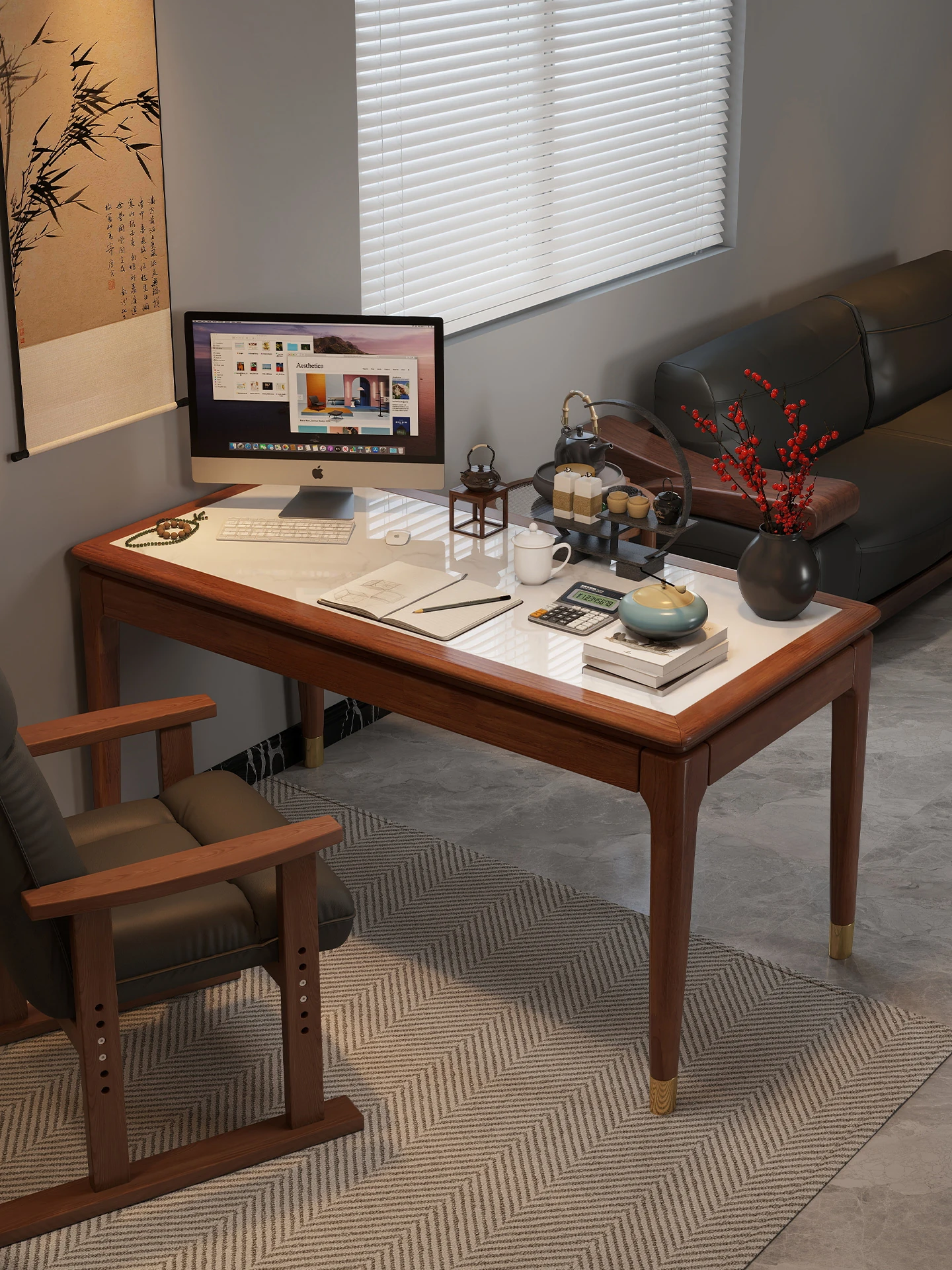 高級感溢れる無垢材ロックボードデスク|大人のためのスタイリッシュなオフィスデスク|小型オフィスにもぴったり|社長のデスクや小さなパソコンデスク、カジュアルなティーテーブルにも最適!