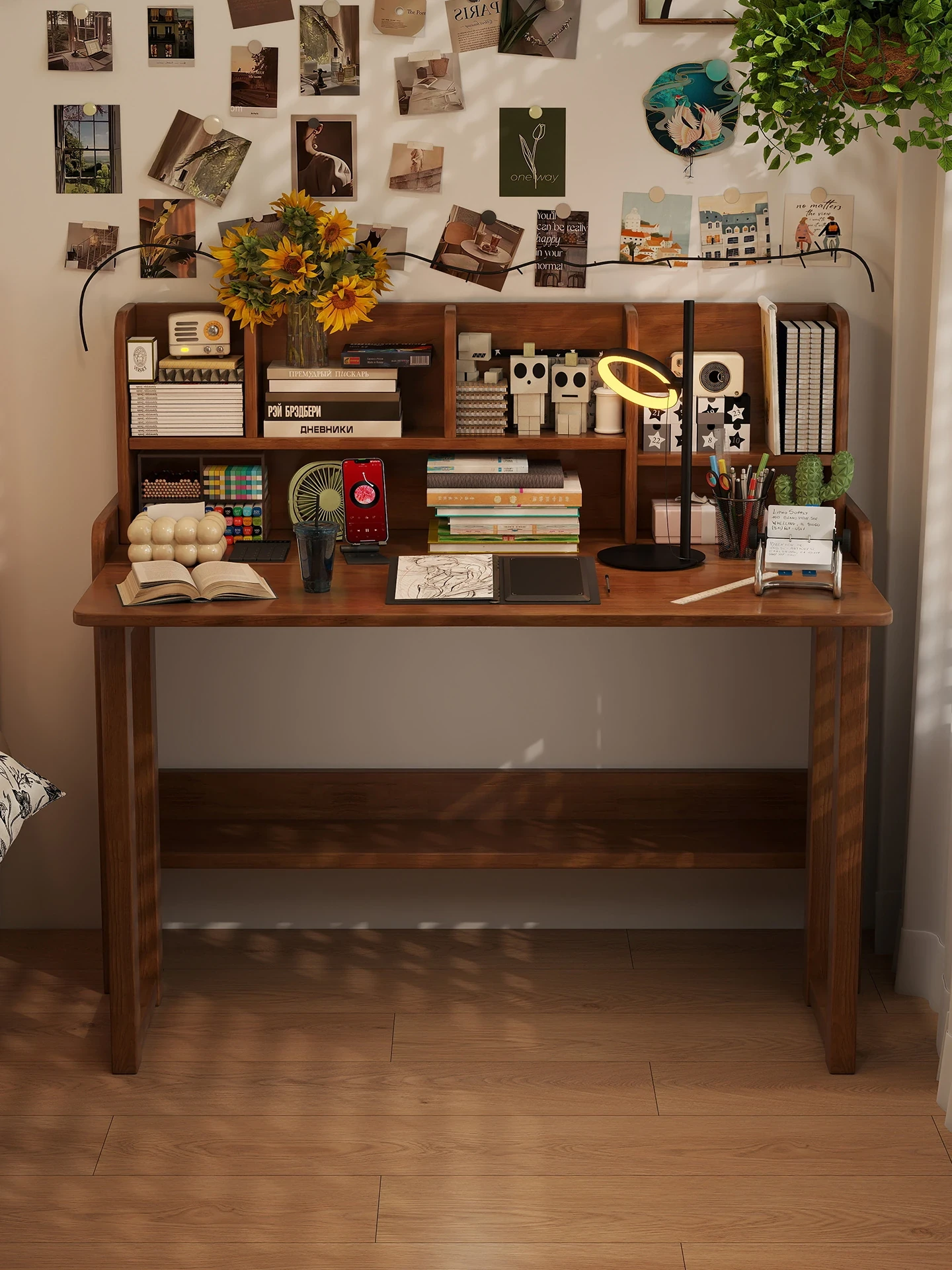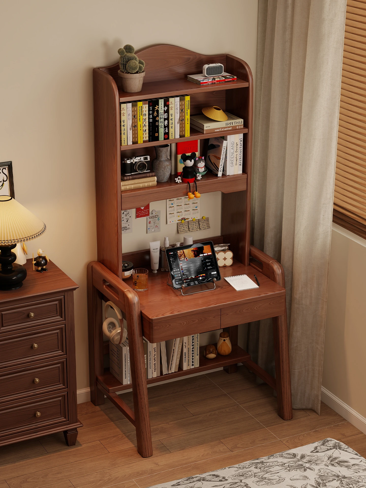 狭い寝室にぴったり!スタイリッシュな木製デスク&本棚一体型昇降式学習デスク - 家庭用、初中高生向け。勉強も快適に、デザインも洗練された一品!