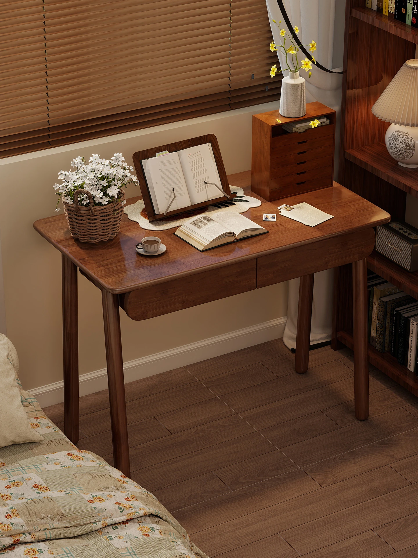 中古の無垢材デスク - コンパクトなベッドサイドテーブル、学生向け書き物デスク、引き出し付き、小型住宅にぴったり!おしゃれで機能的なインテリアを実現します。