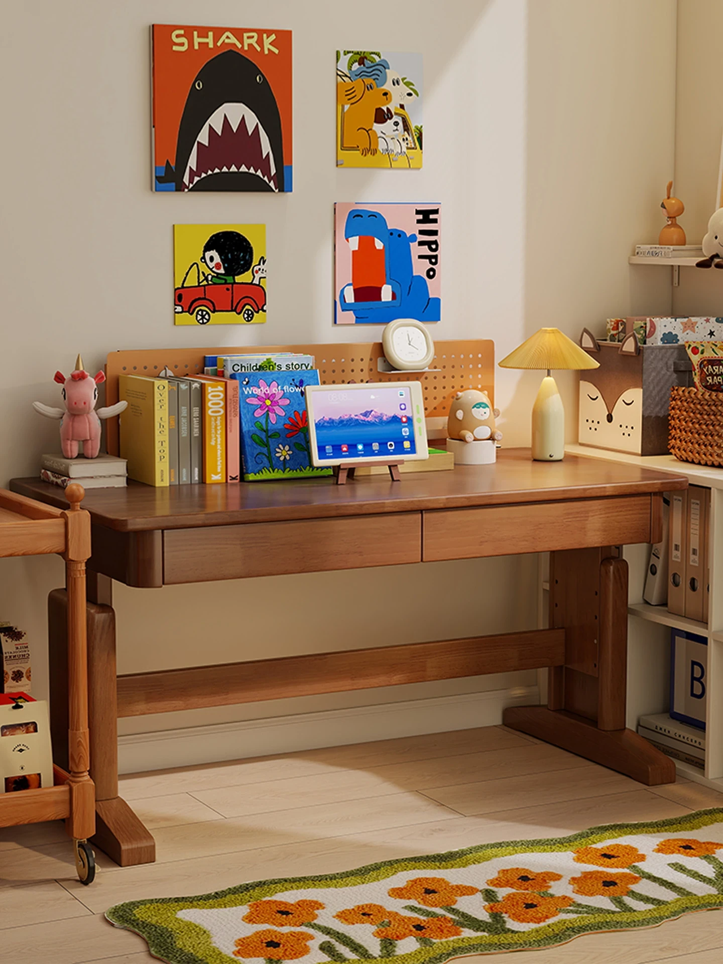 子供用昇降デスク - 木製の学習机、収納引き出し付き!小学生から高校生まで対応、快適な学習環境を提供します。成長に合わせて高さ調整可能で、勉強も楽しくなること間違いなし!