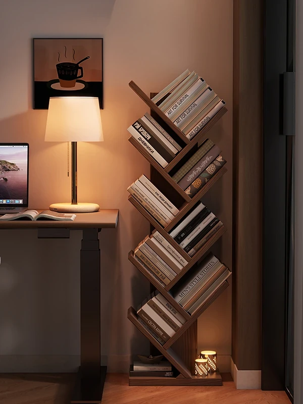 天然木のツリーシェルフ - フロアスタンド多段収納ラック、リビングルームに最適!角隙間やベッドサイドにぴったりの本棚&ディスプレイラックで、あなたの空間をおしゃれに演出します!